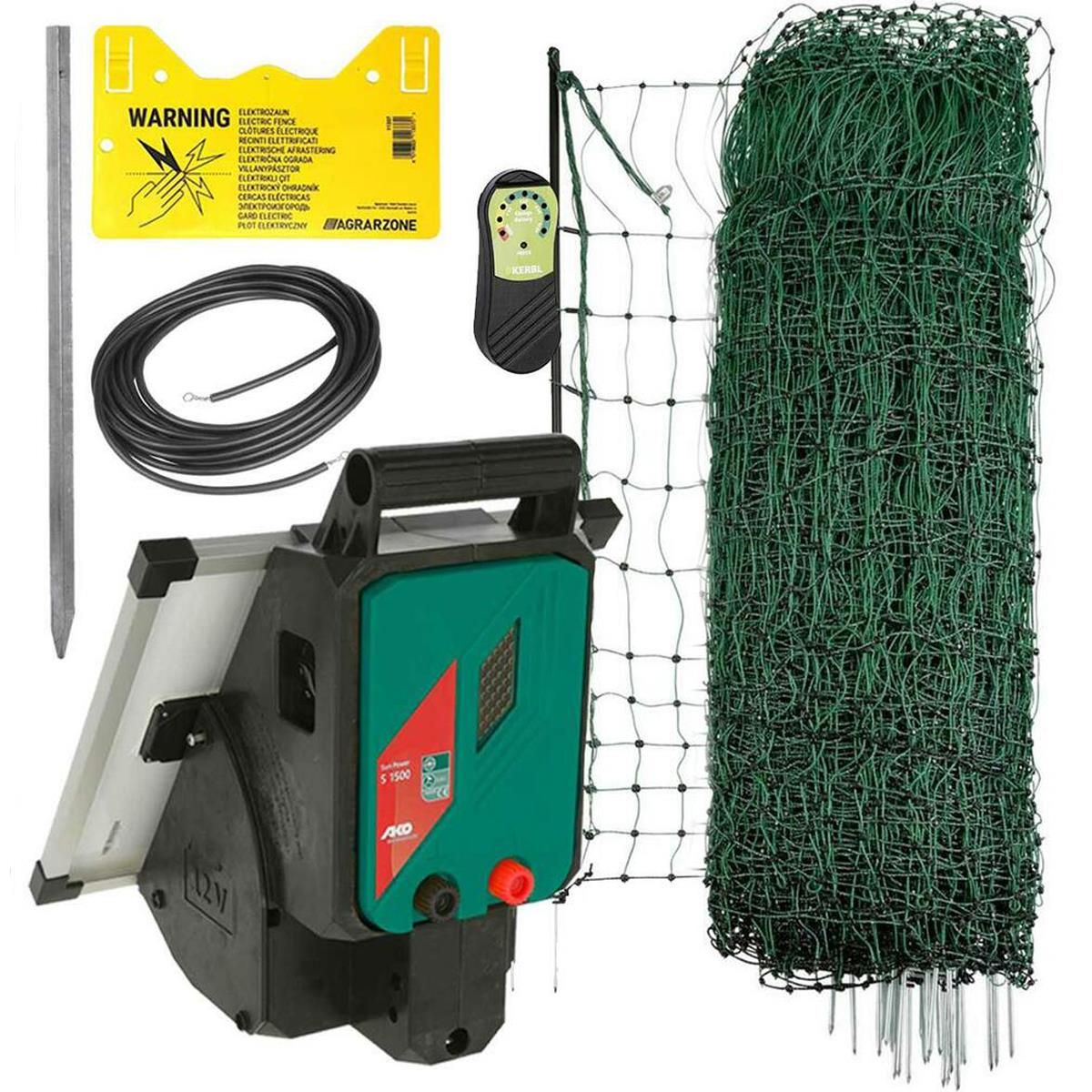 Agrarzone Geflügelzaun Set Sun Power S1500 SOLAR - 50 m elektrifizierbares Geflügelnetz mit 12 V Solar-Weidezaungerät