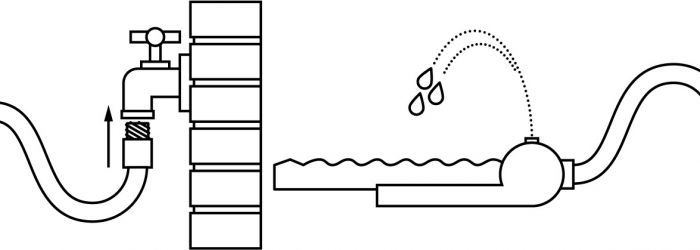 - Drehen Sie das Wasser auf und es wird aus den Löchern gesprüht.