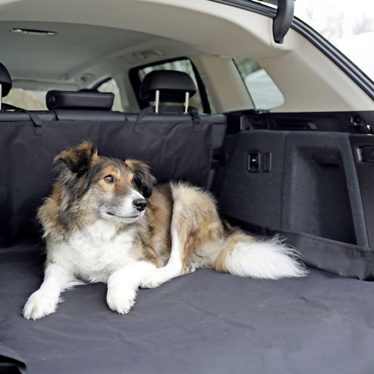 Diese praktische Hundematte schützt Ihren Kofferraum vor Schmutz und Krallenspuren.