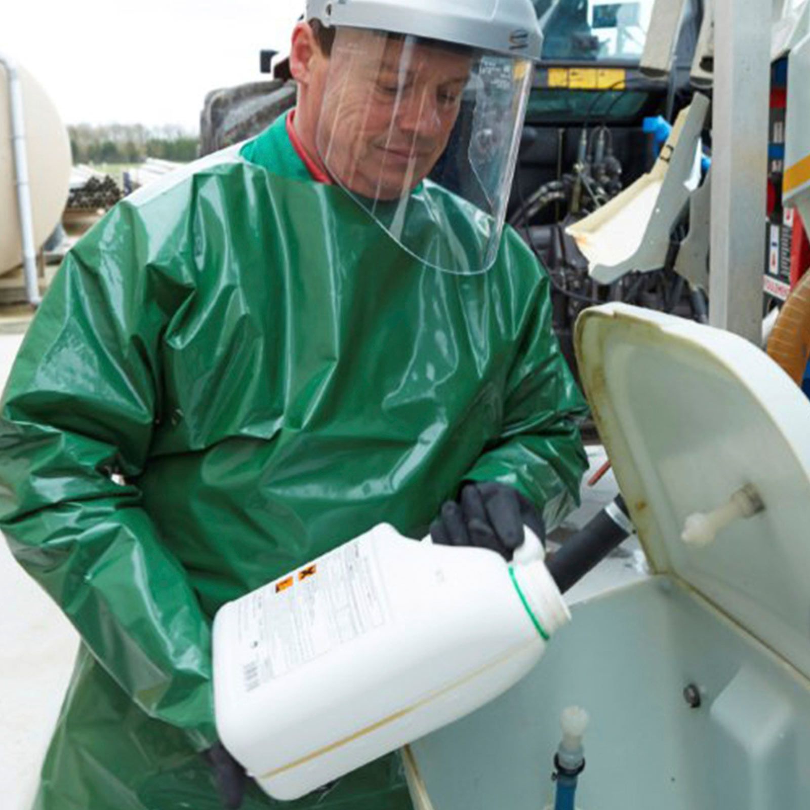 Neben der vorgeschriebenen Sicherheit bietet die Schutzschürze weitere Vorteile. Sie kann mit einem einfachen Handgriff an- und abgelegt werden, dadurch werden keine Chemikalienrückstände mit in die Traktorkabine geschleppt. Die Schürze ist in einer Einheitsgröße erhältlich, die Ärmel- und Schürzenlänge kann aber gekürzt und somit problemlos an den Träger angepasst werden. Weiteres ist die Schütze wiederverwendbar und leicht zu reinigen, Schadstoffe lassen sich hygienisch entfernen.