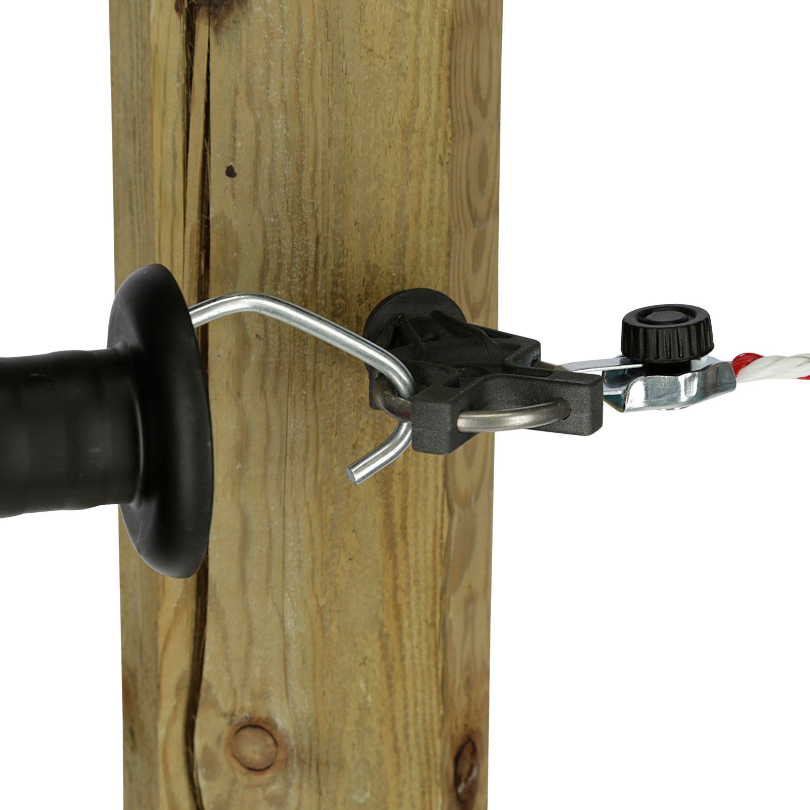 Die Montage am Zaunpfahl ist ein Kinderspiel, die verzinkte Stütze mit Ø 6 mm und Holzgewinde wird einfach in den Pfahl eingedreht. So lassen sich im Handumdrehen hochstabile Umtriebs- & Portionsweiden errichten. Das robuste Kunststoffmaterial ist zusätzlich sehr wetterbeständig und überzeugt durch seine lange Haltbarkeit.