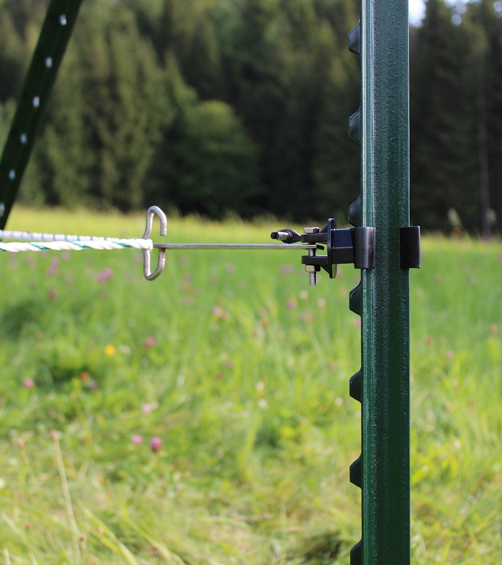 Flexible T-Post Isolator Ecklösung jetzt neu für Litze, Seil und Weidezaunband bis 40 mm!