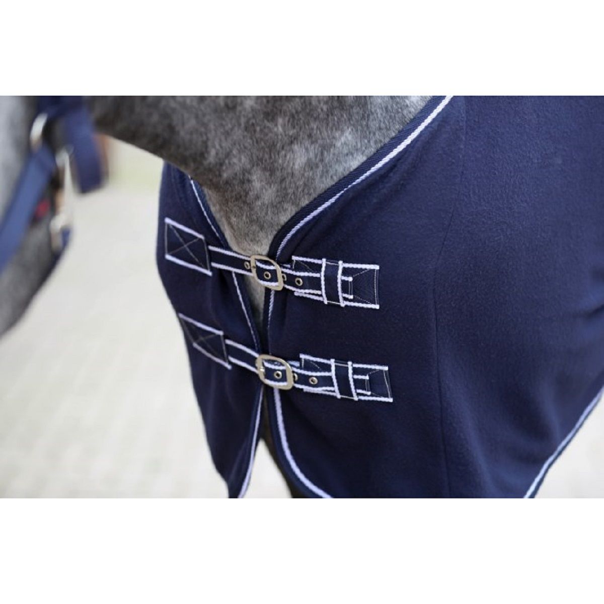Die Abschwitzdecke RugBe Classic von Covalliero besteht aus äußerst leichtem Mikrofleece durch das Ihr Pferd nach dem Training beim Abschwitzen unterstützt wird. Die Pferde Abschwitzdecke transportiert den Schweiß weg vom Körper und unterstützt Ihr Pferd beim Trocknen. Zusätzlich wird es vor Zugluft geschützt. Die Kreuzbegurtung am Bauch und die zwei stabilen Brustschnallen sorgen für einen sicheren Sitz am Pferd. Die zusätzliche Fleecepolsterung am Widerrist verhindert unangenehmes Reiben.