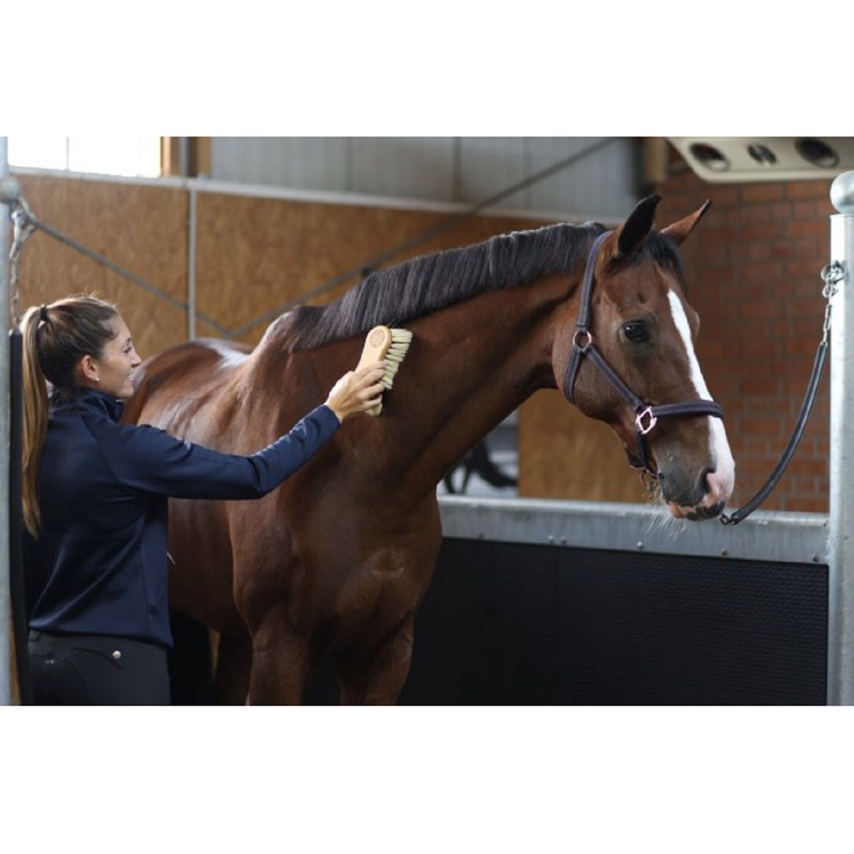 Die MagicBrush Fellbürste für empfindliche Pferde aus Naturmaterial! Die Pferdebürste besteht aus einem abgerundeten Griff aus Öl imprägnierten Buchenholz. Die spezielle MagicBrush-Form liegt sehr schön in der Hand. Der Fibre-Besatz holt loses Haar, Staub und Schmutz aus dem Fell und reinigt sanft und gleichzeitig gründlich das Haarkleid Ihres Pferdes. Die Borsten sind 5 cm lang, dringen tief ins Fell ein und sorgen für ein herausragendes Ergebnis.