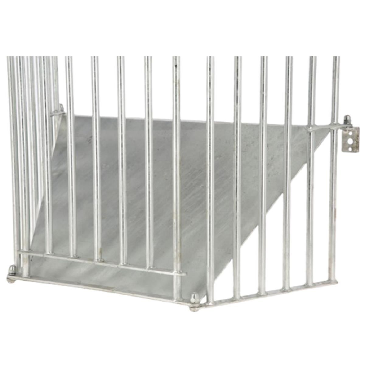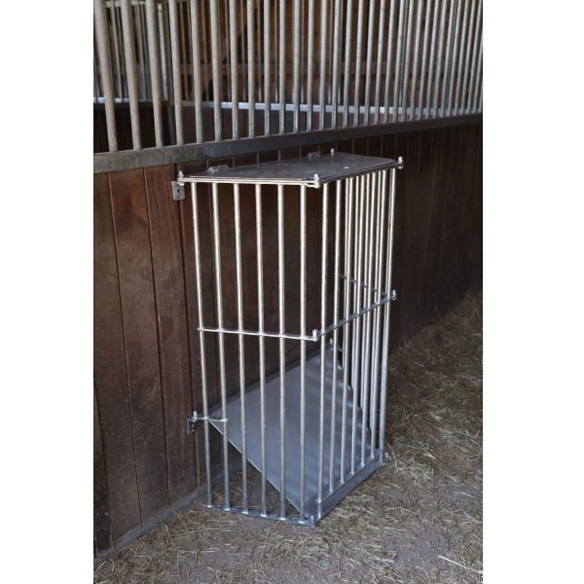 - Die horizontale Öffnung am Boden verhindert, dass sich Futterreste am Boden anstauen und erleichtert die vollständige Entleerung und Reinigung der Raufe