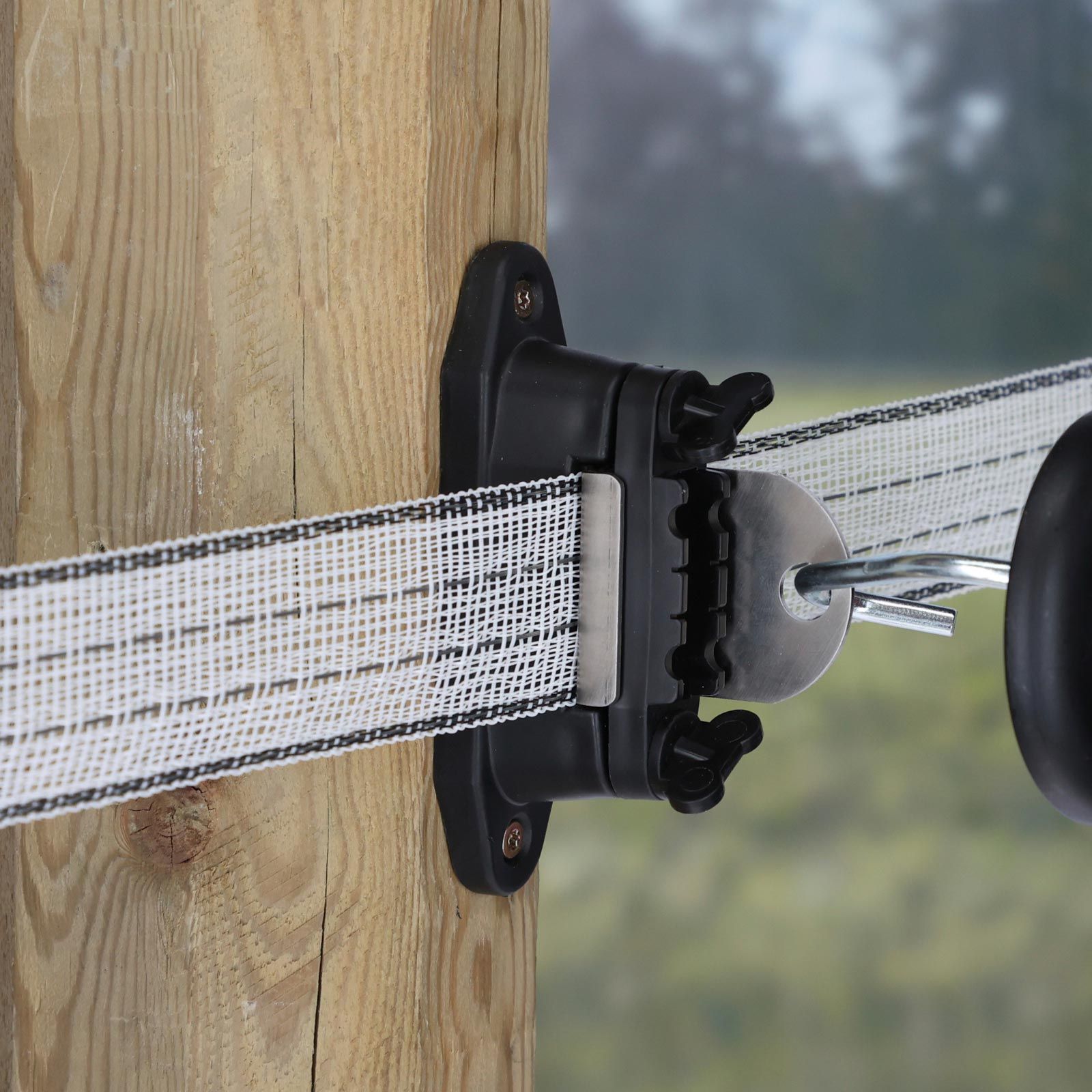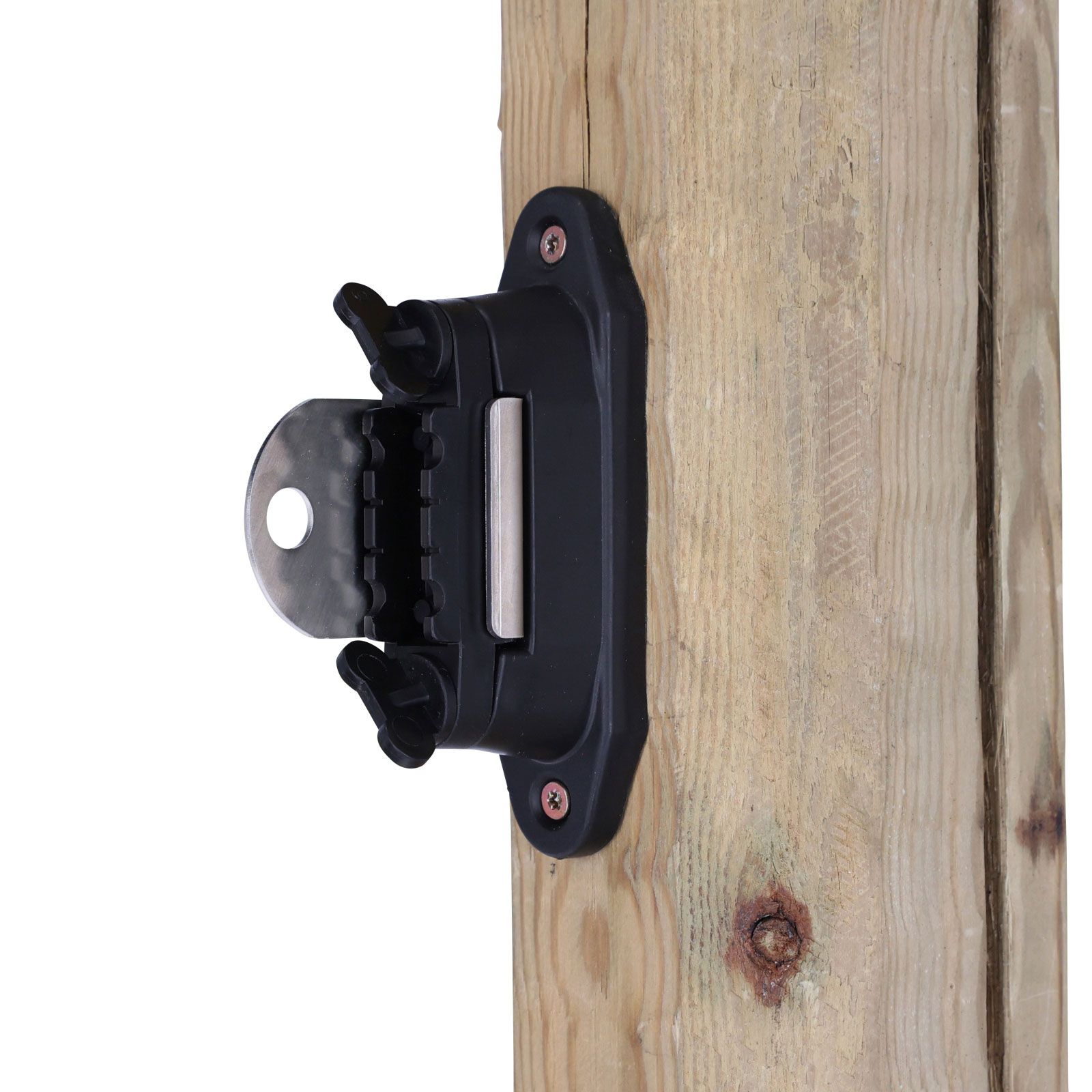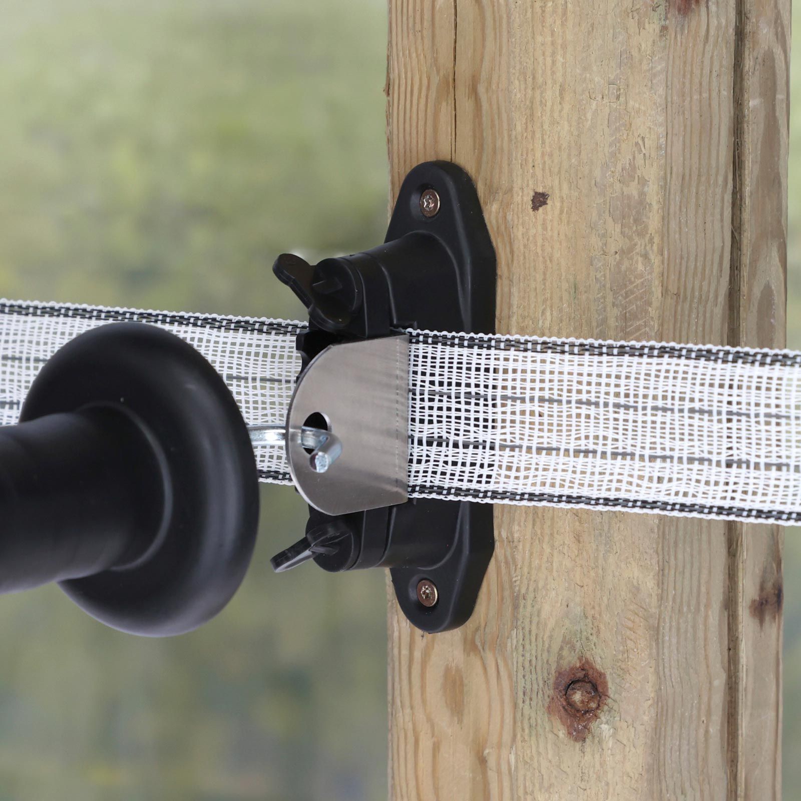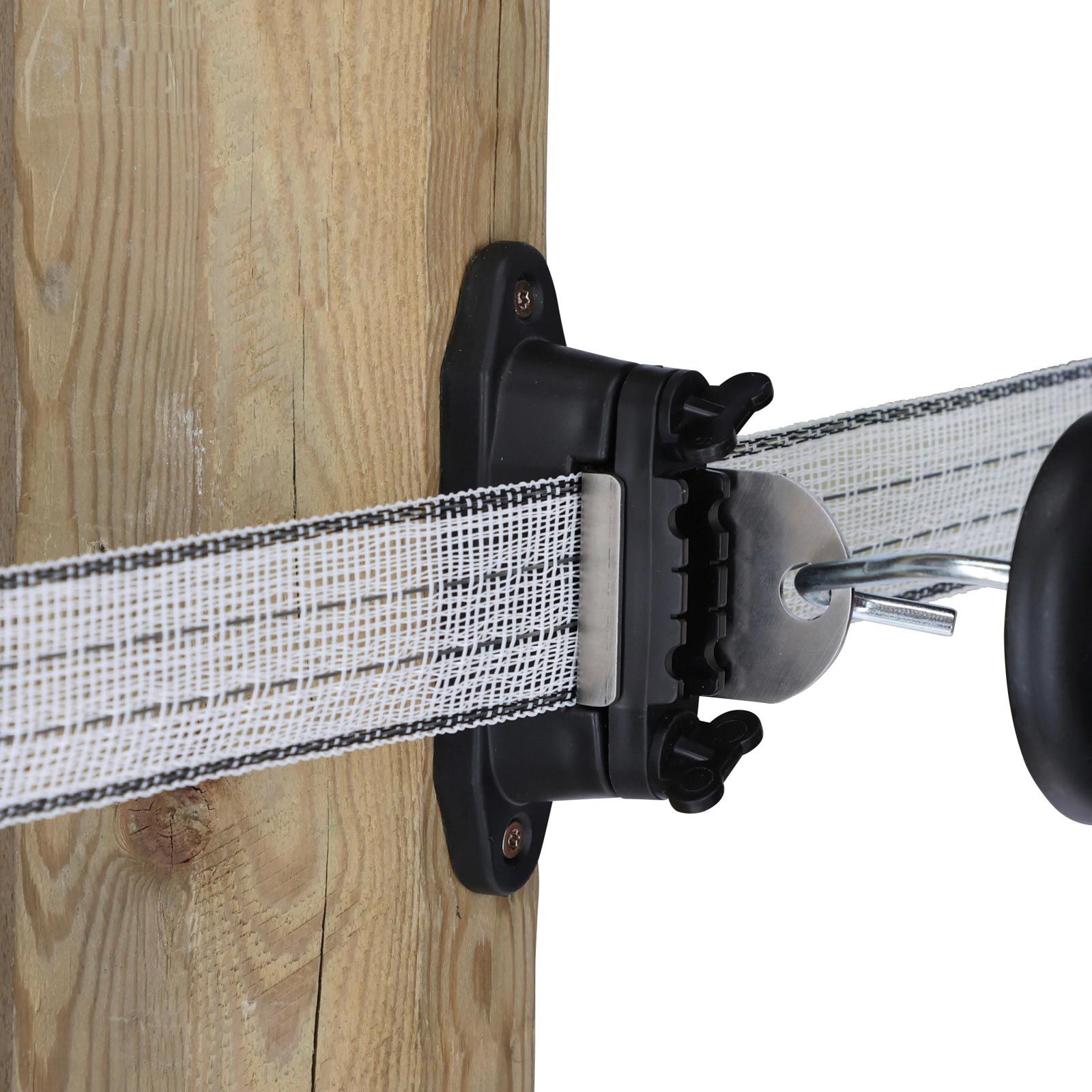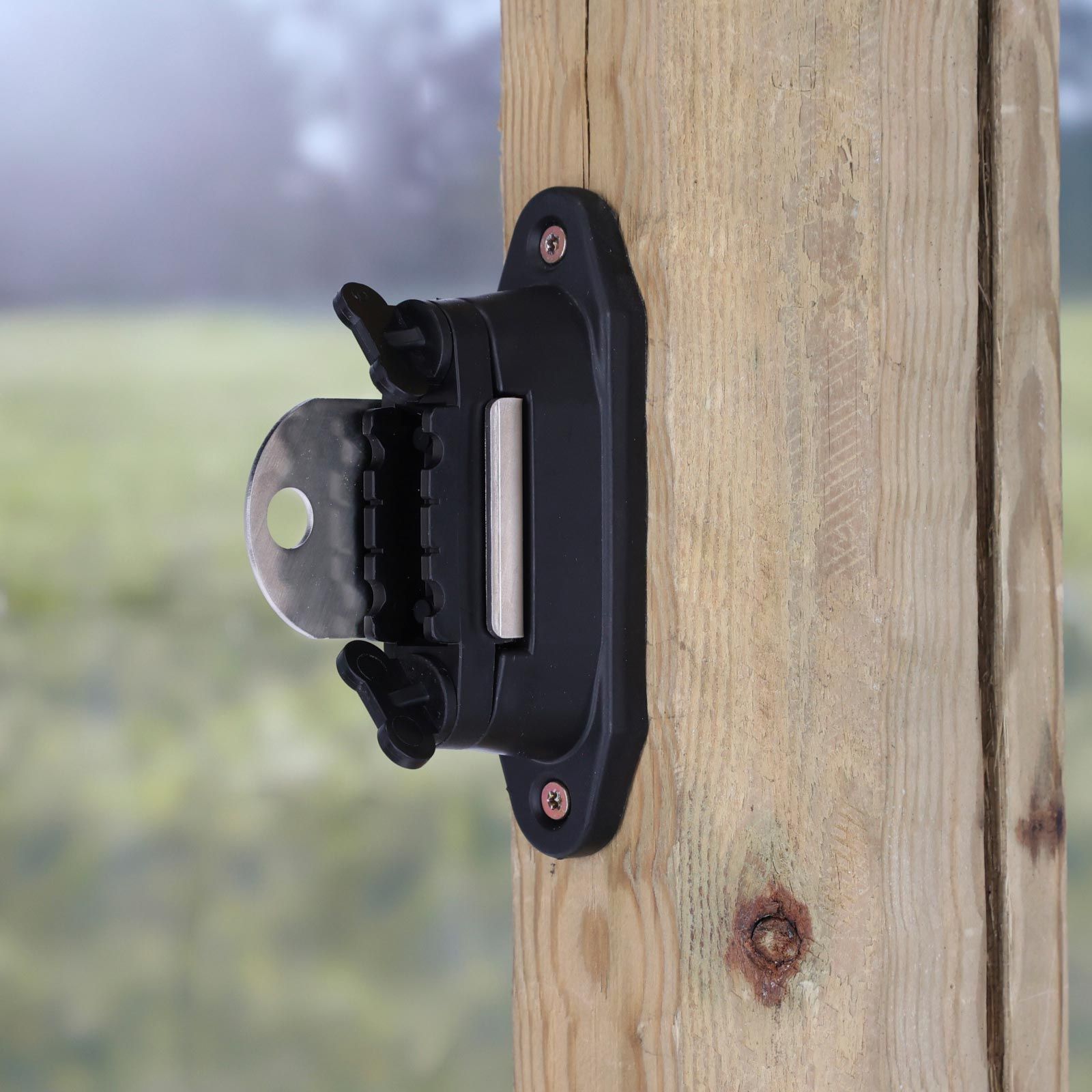 Der Ako Kombi Isolator Profi ermöglicht die einfache Realisierung von T-Abtrennungen am Steckenpfahl. Der Isolator eignet sich auch ideal als Eckisolator mit anschließendem Tor. Die robuste Anschlussplatte aus Edelstahl dient dem Einhängen von Torgriffen. Das Leitermaterial kann hinter der Edelstahlplatte weiterlaufen und muss nicht unterbrochen werden. Gleichzeitig kann Band, Seil und Litze sehr leicht und sicher nachgespannt werden. Eine hervorragende, elektrische Kontaktierung garantiert höchste Leitfähigkeit zwischen dem Leitermaterial und den Torgriffen. Die Montage am Holzpfahl ist durch Anschrauben oder Nageln einfach und schnell erledigt.