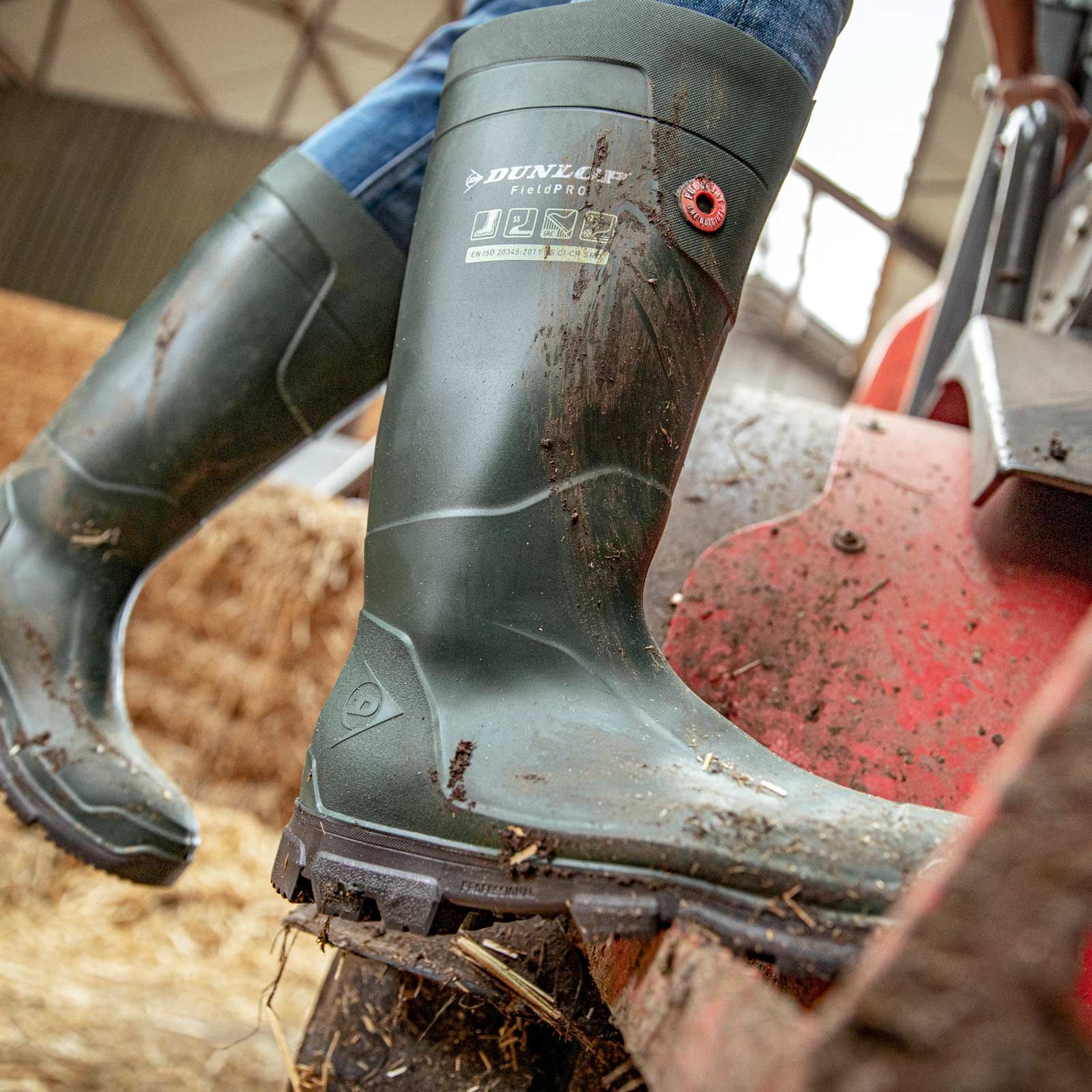 Der Sicherheits-Gummistiefel Dunlop Purofort FieldPRO überzeugt mit einem leichten und unverwechselbar bequemen Tragegefühl beim Arbeiten in Landwirtschaft, Forstwirtschaft und Industrie. Durch das besondere Snug-Fit-Design sitzt dieser Sicherheitsstiefel fast so gemütlich wie ein Sneaker und verhindert ein Verrutschen der Ferse. Dank innovativer Purofort-Materialtechnologie ist der Dunlop Purofort FieldPRO zudem sehr leicht und flexibel, ohne dabei Abstriche in der Sicherheit machen zu müssen