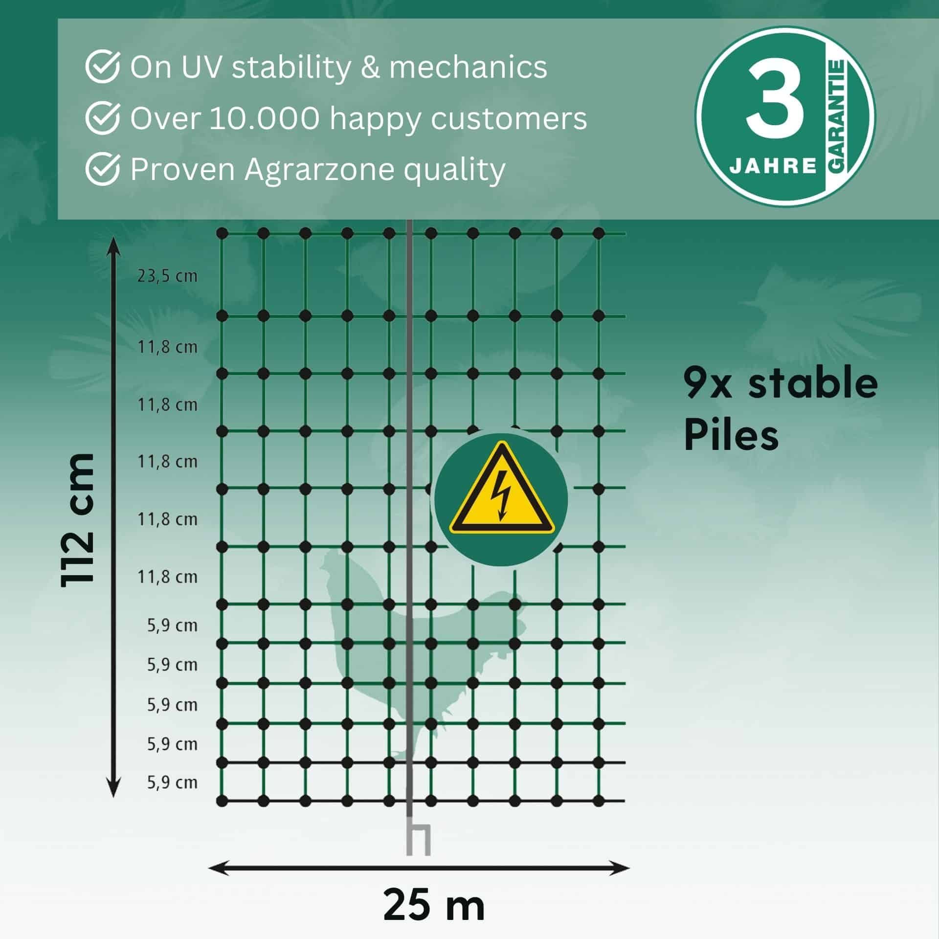 25 m x 112 cm mit 9 Kunststoffpfähle