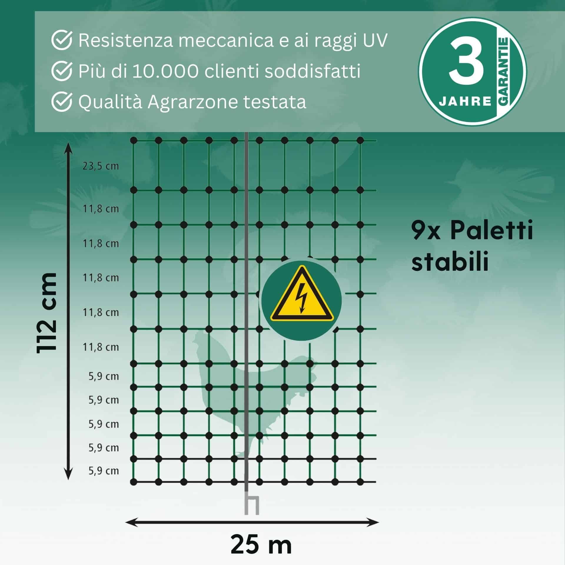 Agrarzone Geflügelnetz Classic mit Strom, Doppelspitze, grün 25 m x 112 cm