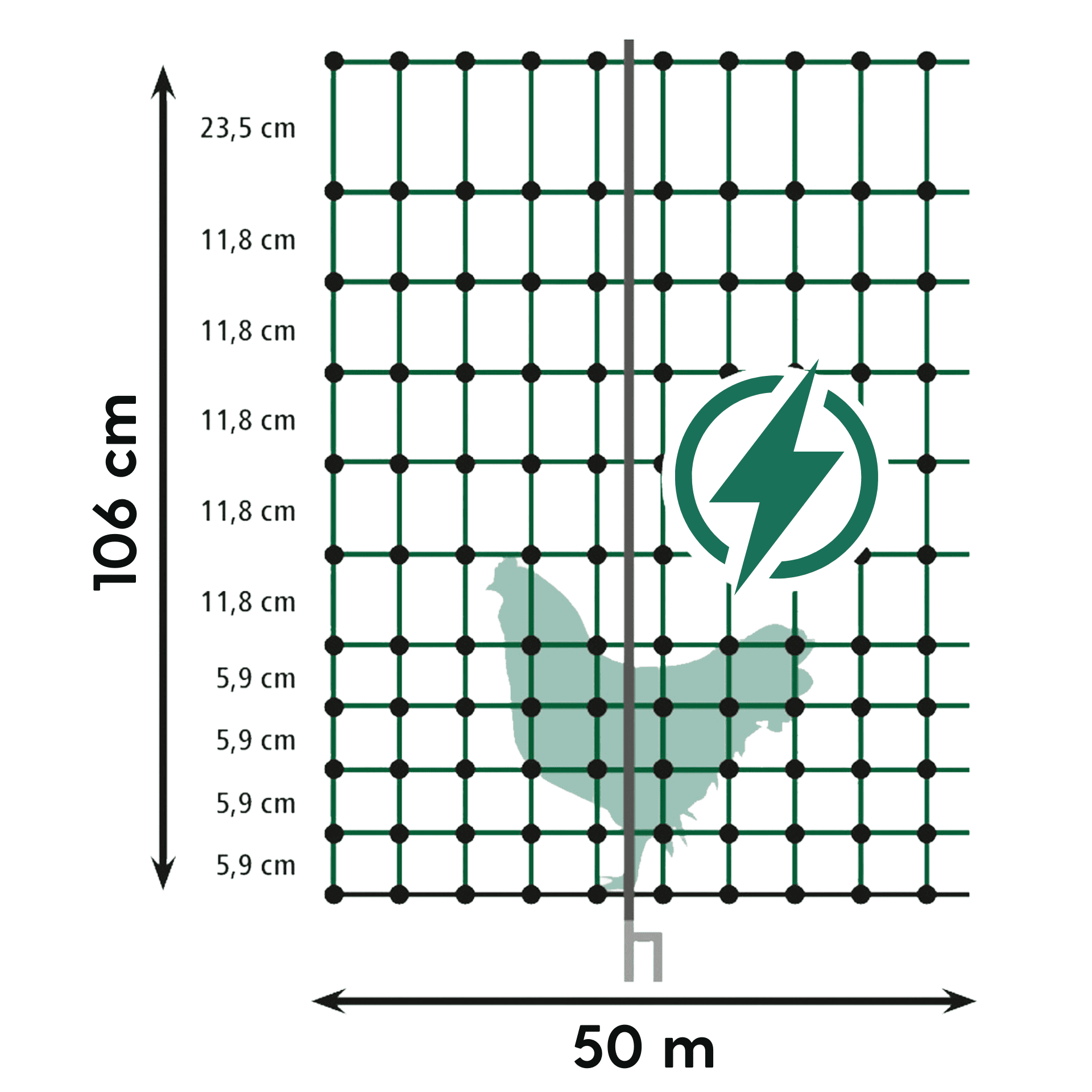 Agrarzone Geflügelnetz Classic mit Strom, Doppelspitze, grün 50 m x 106 cm