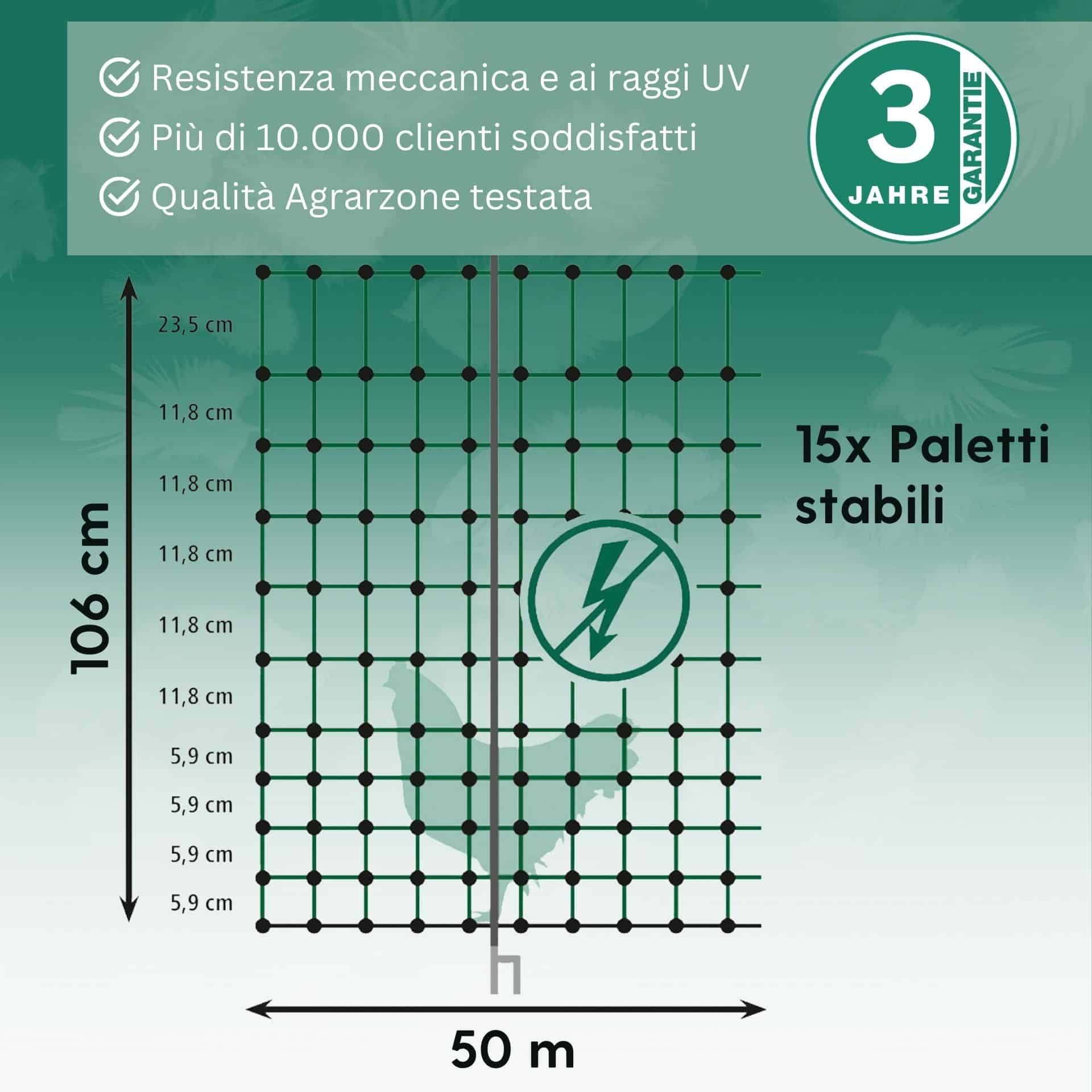 Agrarzone Geflügelnetz Classic ohne Strom, Doppelspitze, grün 50 m x 106 cm