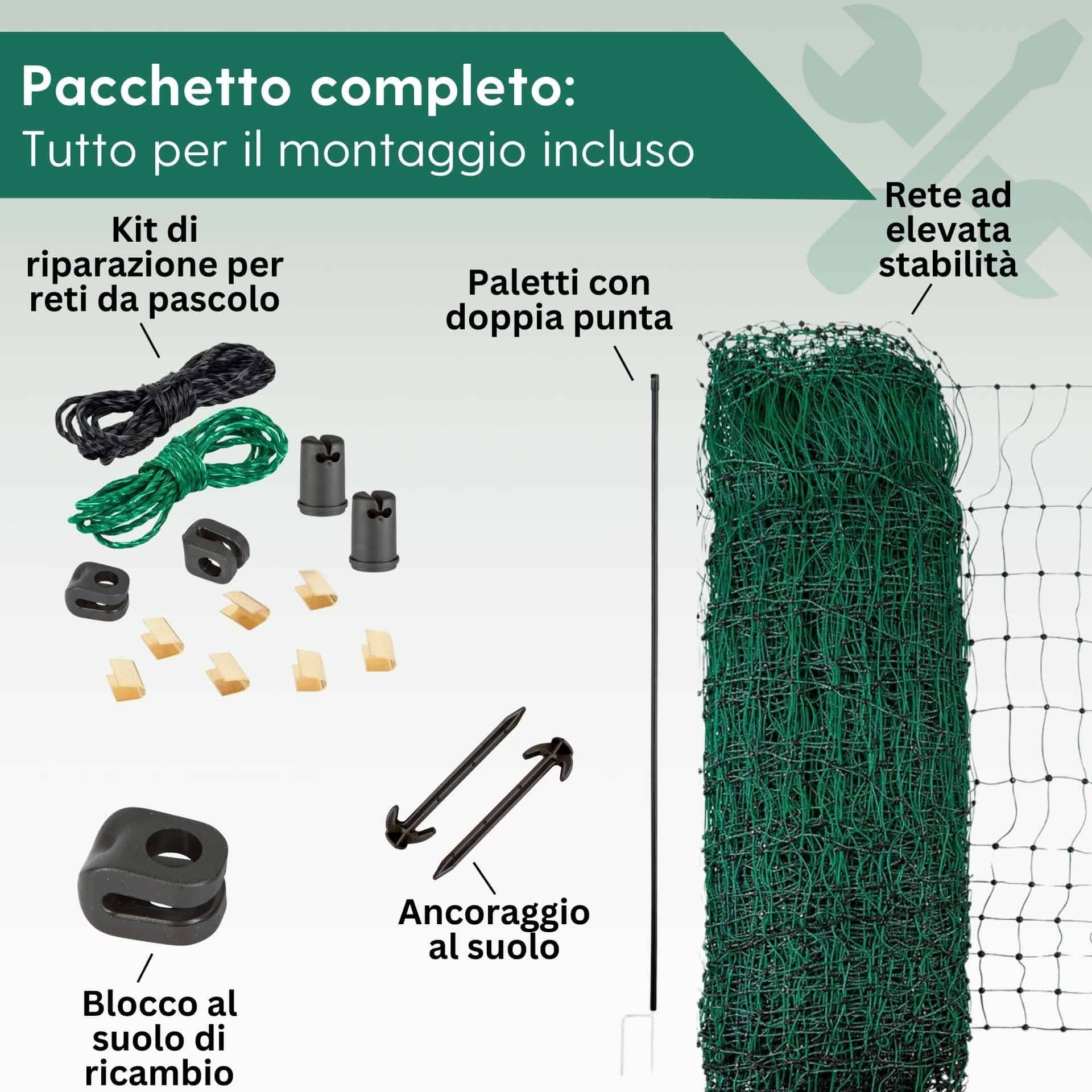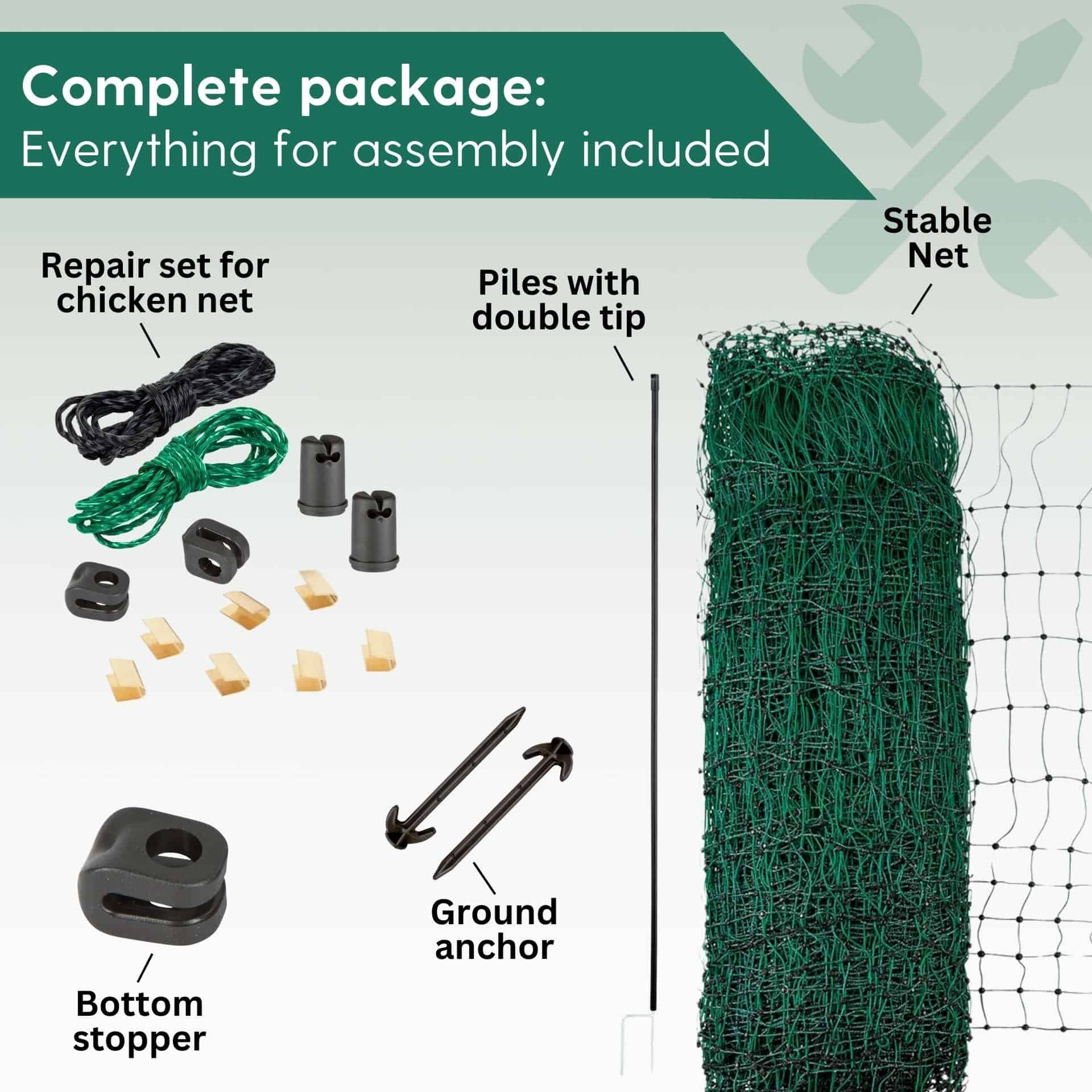 - Kopfisolator und Bodenstopper bieten sicheren Halt für das Geflügelnetz