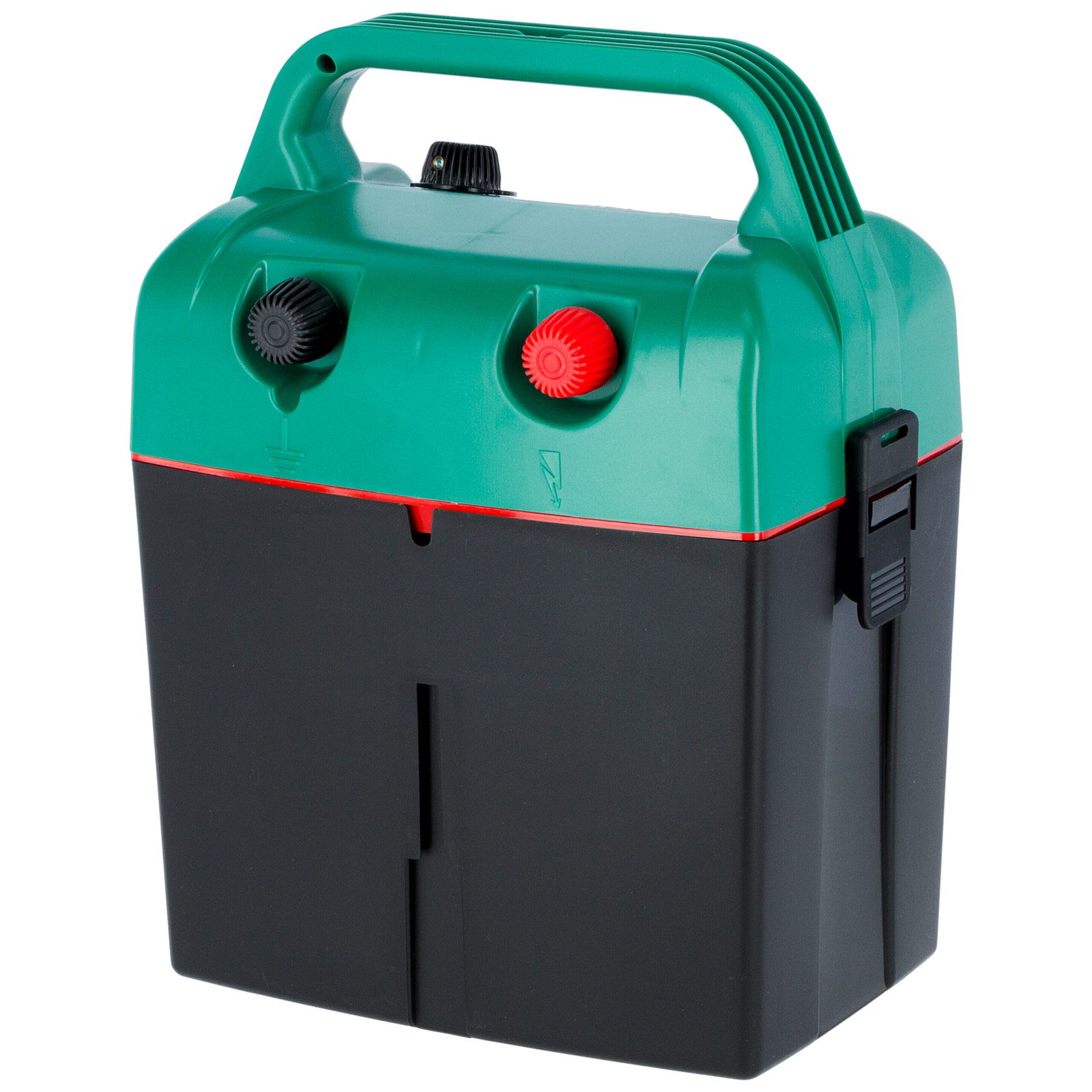 Das batteriebetriebene Universalgerät garantiert eine leichte Bedienung durch die optimale Ausrichtung des Drehschalters und der Anzeigen. Durch den manuellen Drehschalter ist die Schlagstärke in 5 Stufen einstellbar. Dadurch ist der Stromverbrauch effizient regelbar und an die jeweiligen Zaunverhältnisse anpassbar. Eine mehrstufige, farbige LED-Leiste (Grün, Gelb, Rot) ermöglicht eine optische Kontrolle der Zaunleistung. Die Batteriespannung wird durch eine separate Anzeige im Überblick behalten (LED blinkt Rot wenn die 9 Volt Batterie bzw. der 12 Volt Akku leer ist). Das robuste Gehäuse wurde speziell für den Einsatz im Feld entwickelt, ist extrem bruchfest und hat eine hohe Witterungsbeständigkeit. Mit dem ergonomischen Tragegriff lässt sich das mobile 9 Volt Batteriegerät leicht transportieren.