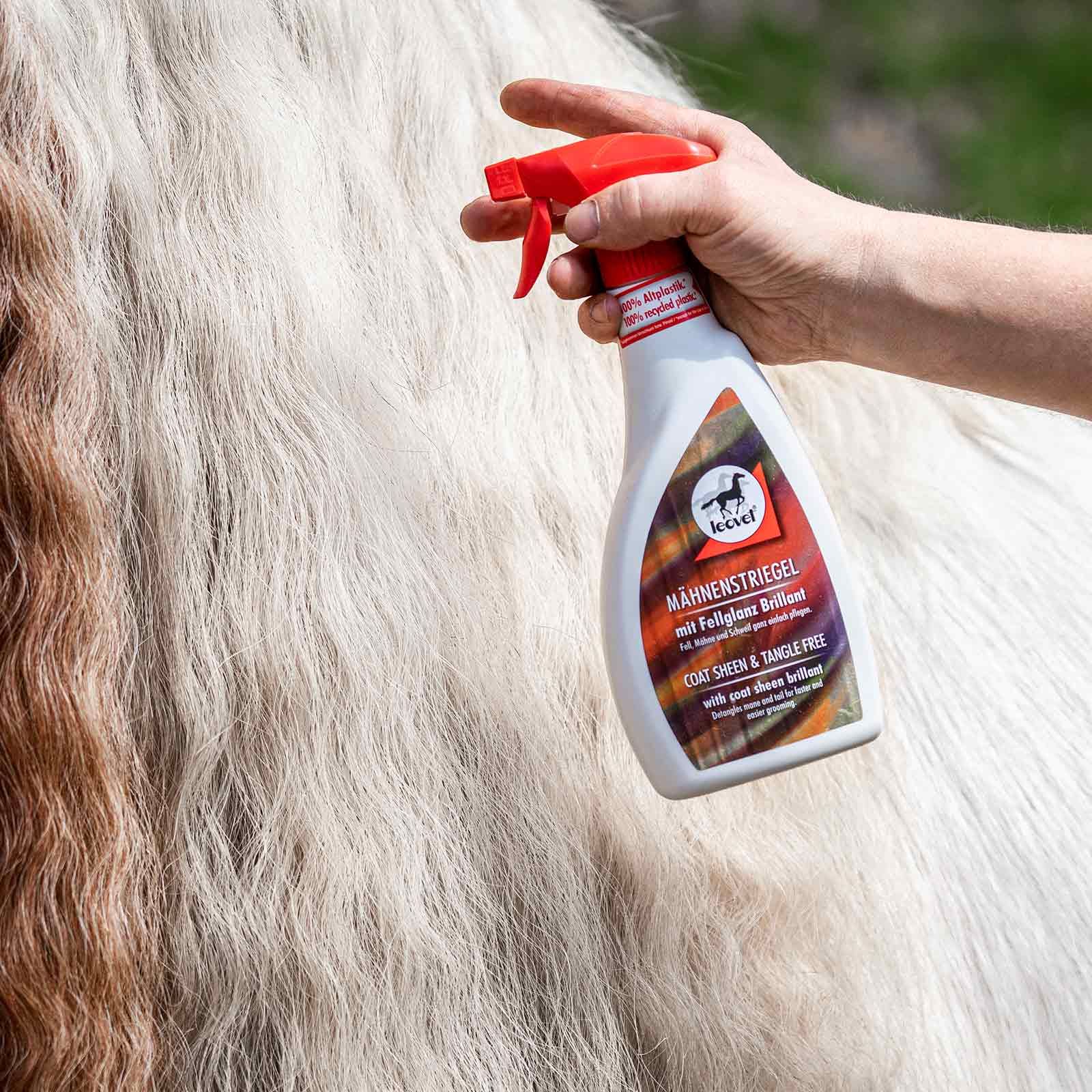 Schnelle Kämmbarkeit & Brillianz für Mähne, Schweif & Fell mit dem Leovet Mähnenspray!