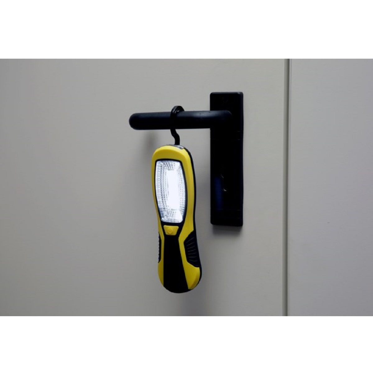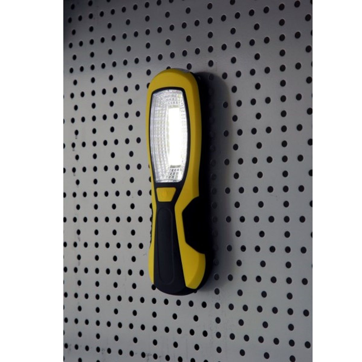 Die LED-Arbeitsleuchte Workfire von Kerbl besteht aus einem handlichen und äußerst robusten ABS-Kunststoffgehäuse mit rutschfester Gummierung im Griffbereich. Sie leuchtet mit leuchtstarken 3 Watt COB-LEDs. Durch 3 zusätzliche LEDs im Leuchtenkopf kann die LED Leuchte auch als sparsame Taschenlampe verwendet werden. Ein ausklappbarer und um 360° drehbarer Haken ermöglicht das Aufhängen an verschiedensten Stellen. Ein zusätzlicher Magnet an der Rückseite lässt das anbringen an Metalloberflächen zu. Die vielseitige LED Arbeitsleuchte ist zudem spritzwassergeschützt. Im Lieferumfang sind 3 x 1,5 V - AA Batterien enthalten.