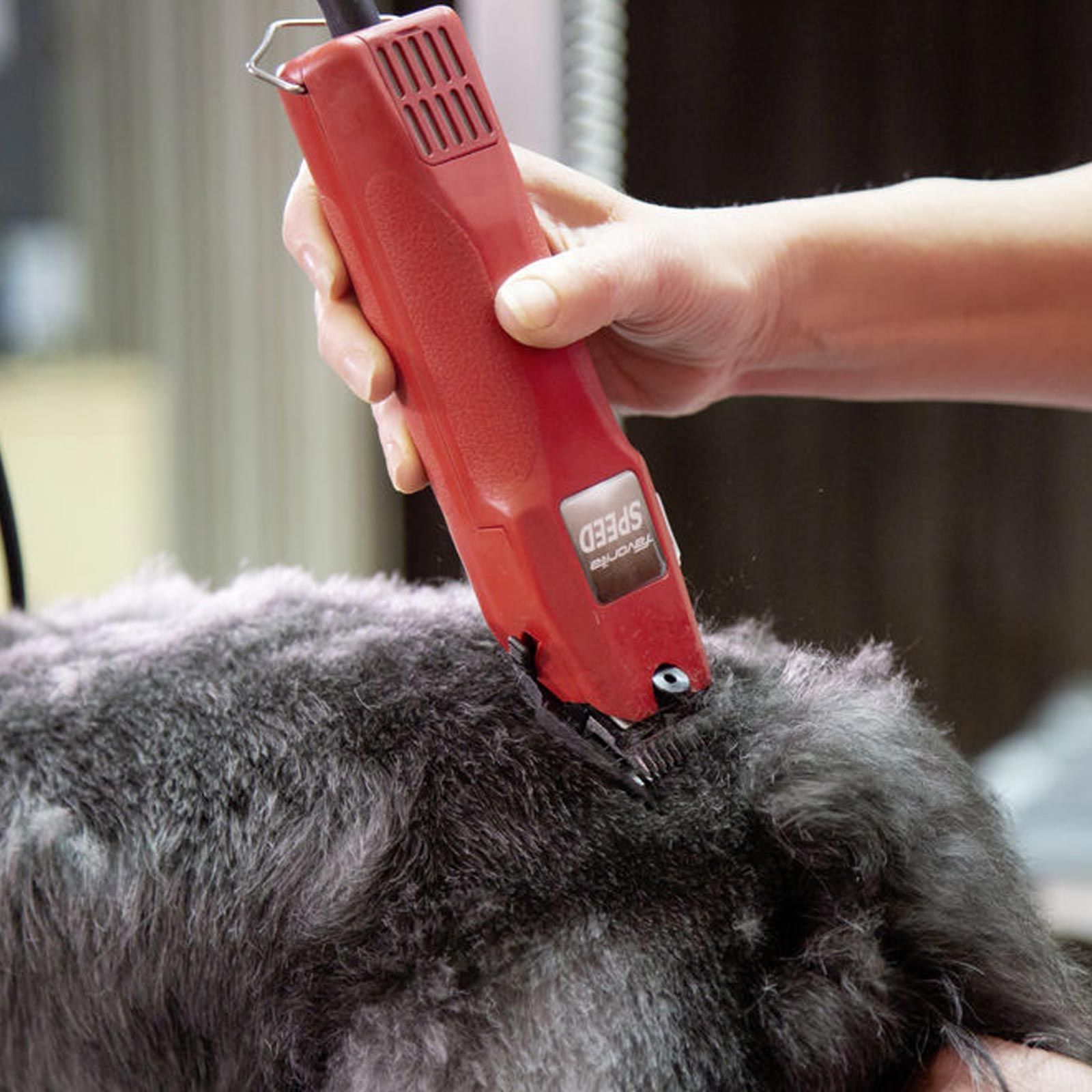 Die Favorita Speed von Aesculap ist eine professionelle und zuverlässige Schermaschine für den täglichen Dauerbetrieb. Die Schermaschine eignet sich hervorragend für die Hunde-Vollschur und kann auch für die Teilschur von Pferden eingesetzt werden. Die netzbetriebene Schermaschine überzeugt mit einem eigengefertigten, sehr kraftvollen und langlebigen Aesculap-Motor mit 3.000 Umdrehungen pro Minute. Dank verschleißfestem Metallschwinghebel erzielt die Schermaschine gleichbleibend gute Schnittergebnisse. Selbst schwieriges Tierfell schneidet die Favorita Speed präzise und sauber.