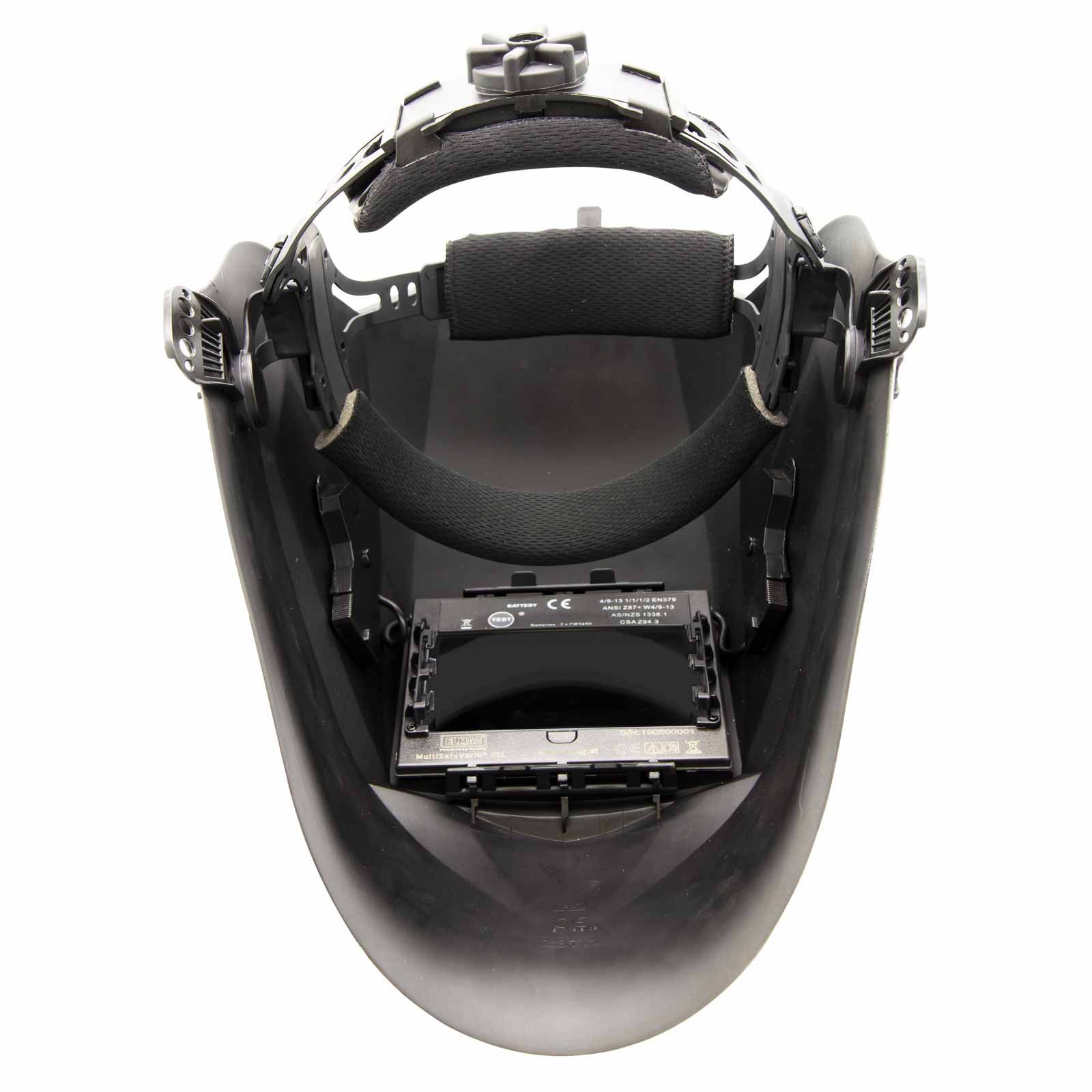 Die Hellstufe des großen Sichtfeldes (98 x 55 cm) ermöglicht einen durchgehenden Schweißprozess mit geschlossenem Helm. Vom Ansetzen und Zünden der Elektrode bis zur Schweißnahtprüfung, beim Elektrodenwechsel und Materialhandling kann das Visier unten bleiben. Ein zufälliges 'Verblitzen' wie z.B. beim Heften ist ausgeschlossen.