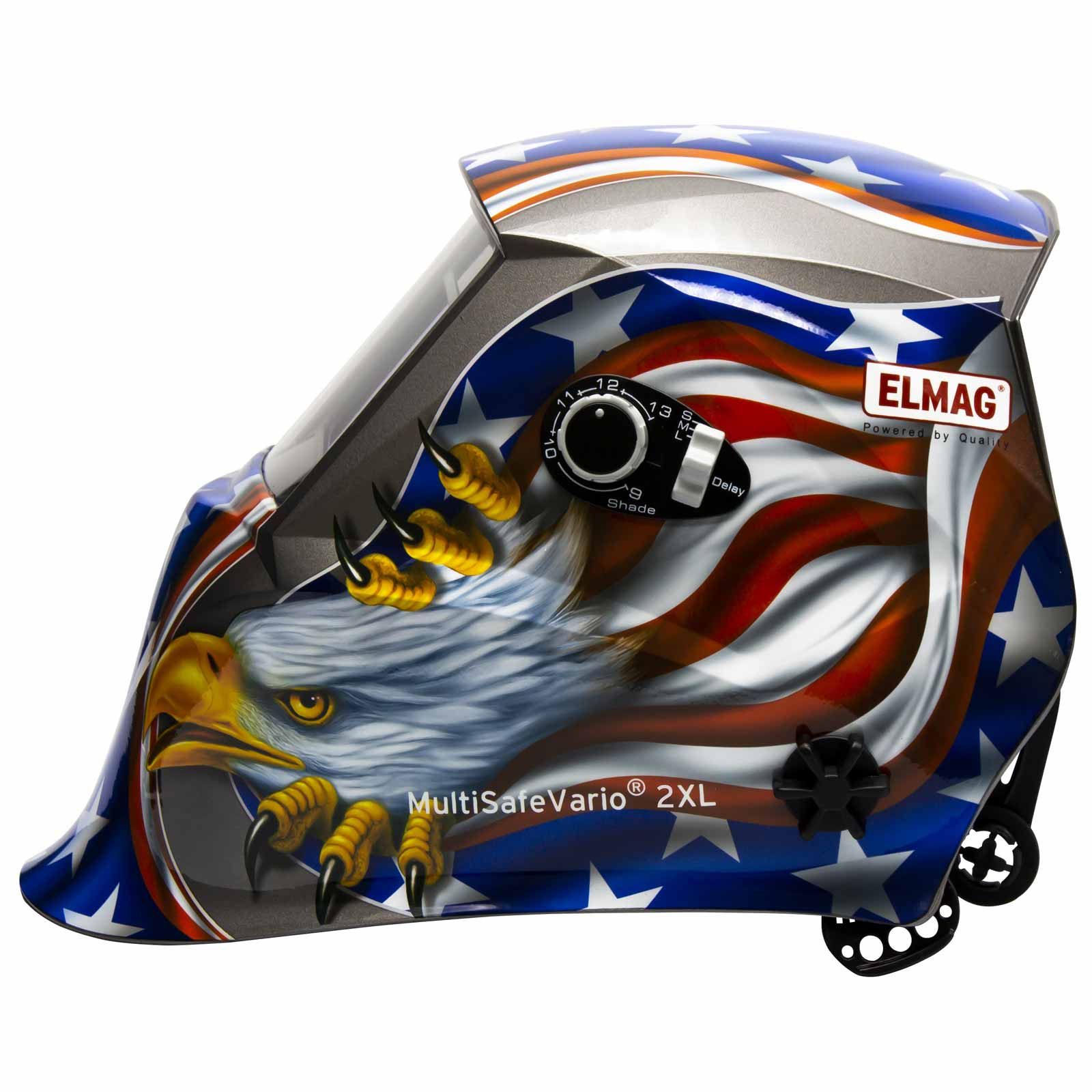 Der MultiSafeVario® Schweißhelm "EAGLE" ist für alle gängigen Schweiß-und Schleifarbeiten verwendbar. Optimal für MMA-Elektrodenschweißen, MIG/MAG- & WIG/TIG-Schutzgasschweißen, Plasmaschneiden und Schleifverfahren. Der Automatik Schweißhelm schützt verlässlich die Augen und das Gesicht vor Lichtbogenstrahlung und bietet eine perfekte Abschirmung des Kopfes und des Halses vor Metallspritzern, Schweiß- und Schleiffunken. Durch das einstellbare Kopfband mit Einrastmechanismus lässt sich der Schirm optimal bequem an die Kopfgröße anpassen. Er bietet dank Up&Down-Mechanismus eine Schwerpunktoptimierung beim Öffnen und Schließen des Visiers.
