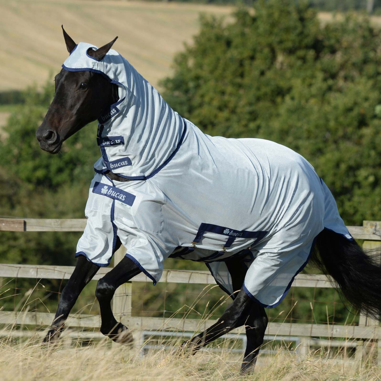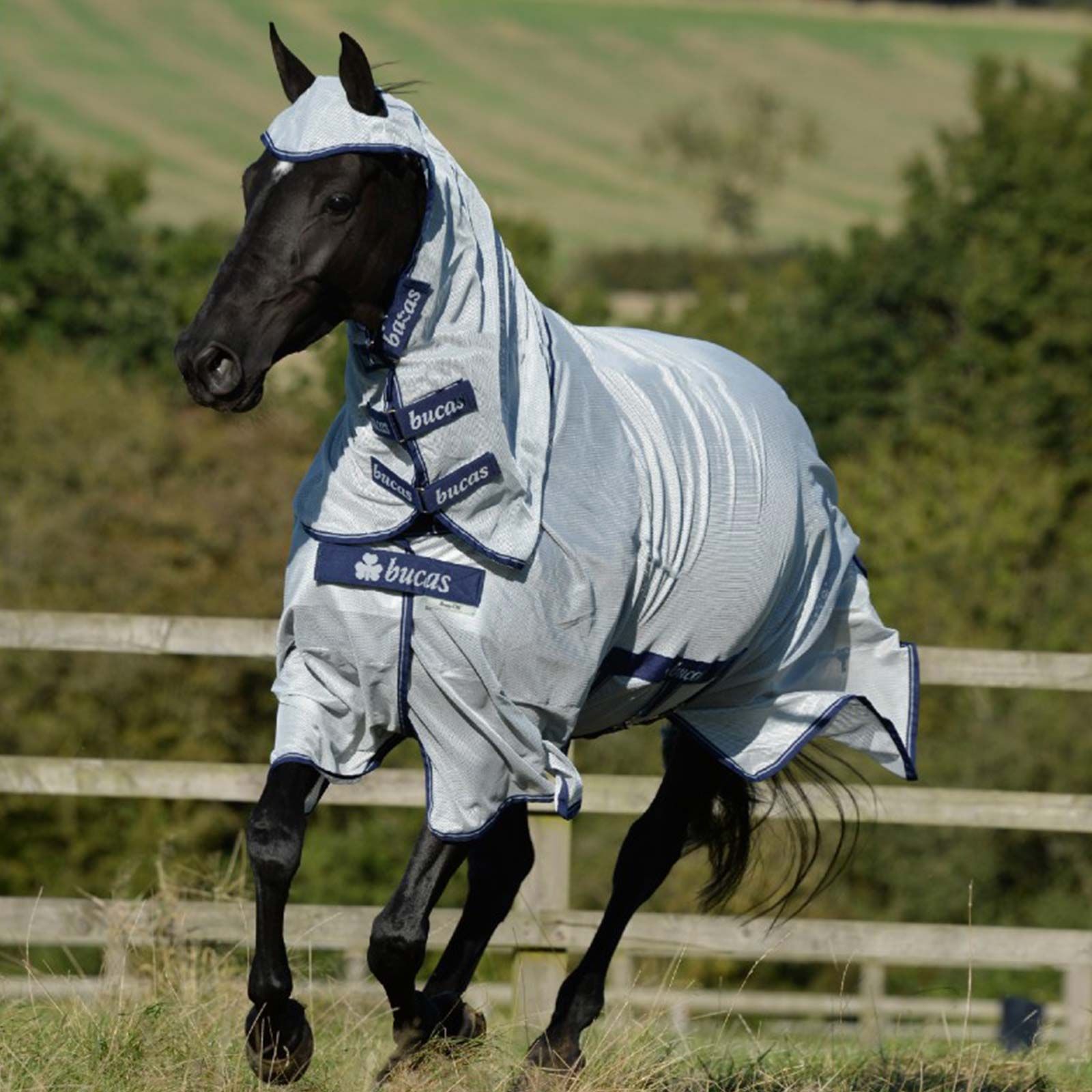 Die Buzz-Off X Fliegendecke ist eine speziell entwickelte, extra tief geschnittene Fliegendecken-Serie von Bucas. Sie schützt vor Fliegen und anderen Insekten und bietet zudem hervorragenden UV-Schutz. Die Pferde-Fliegendecke besteht aus einem extra feinmaschigen, leichten Netzgewebe, das Fliegen abhält und das Fell vor der Sonne schützt.