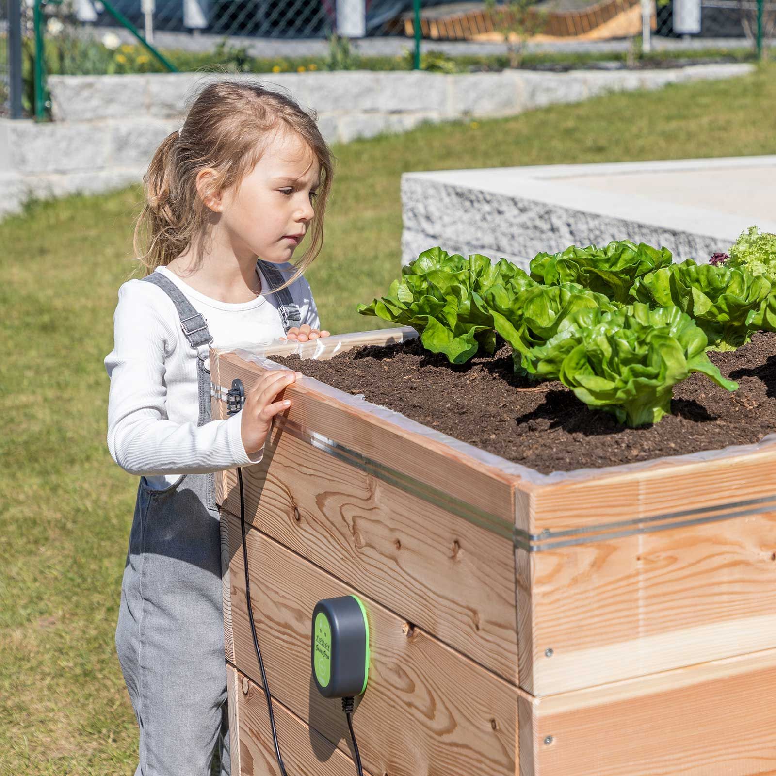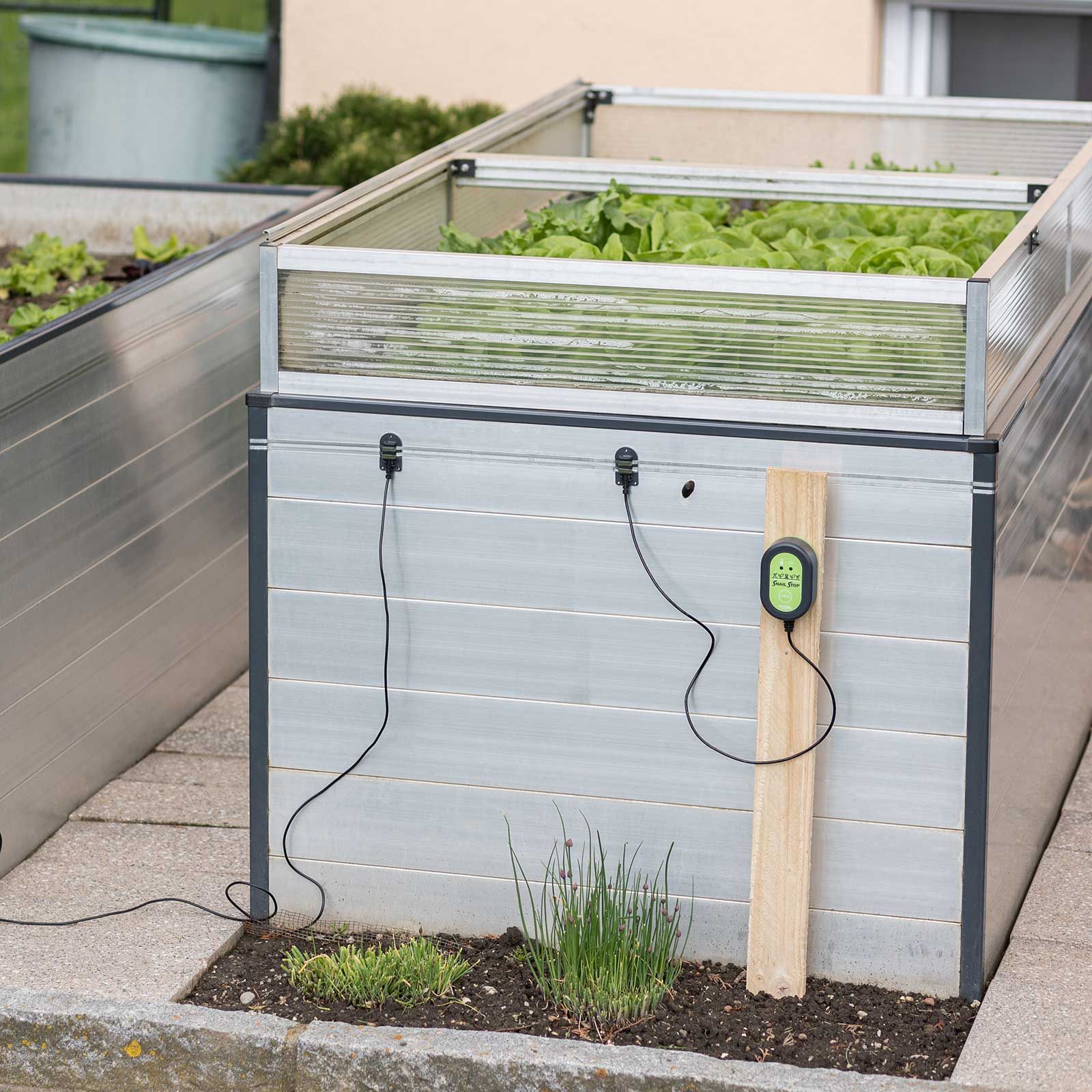 Mittels Beetverbinder, welche als Zubehör erhältlich sind, können auch mehrere Beete mit einem einzigen Stromgerät betrieben werden. So lässt sich der Schneckenzaun auf maximal 30 m Gesamtlänge erweitern.