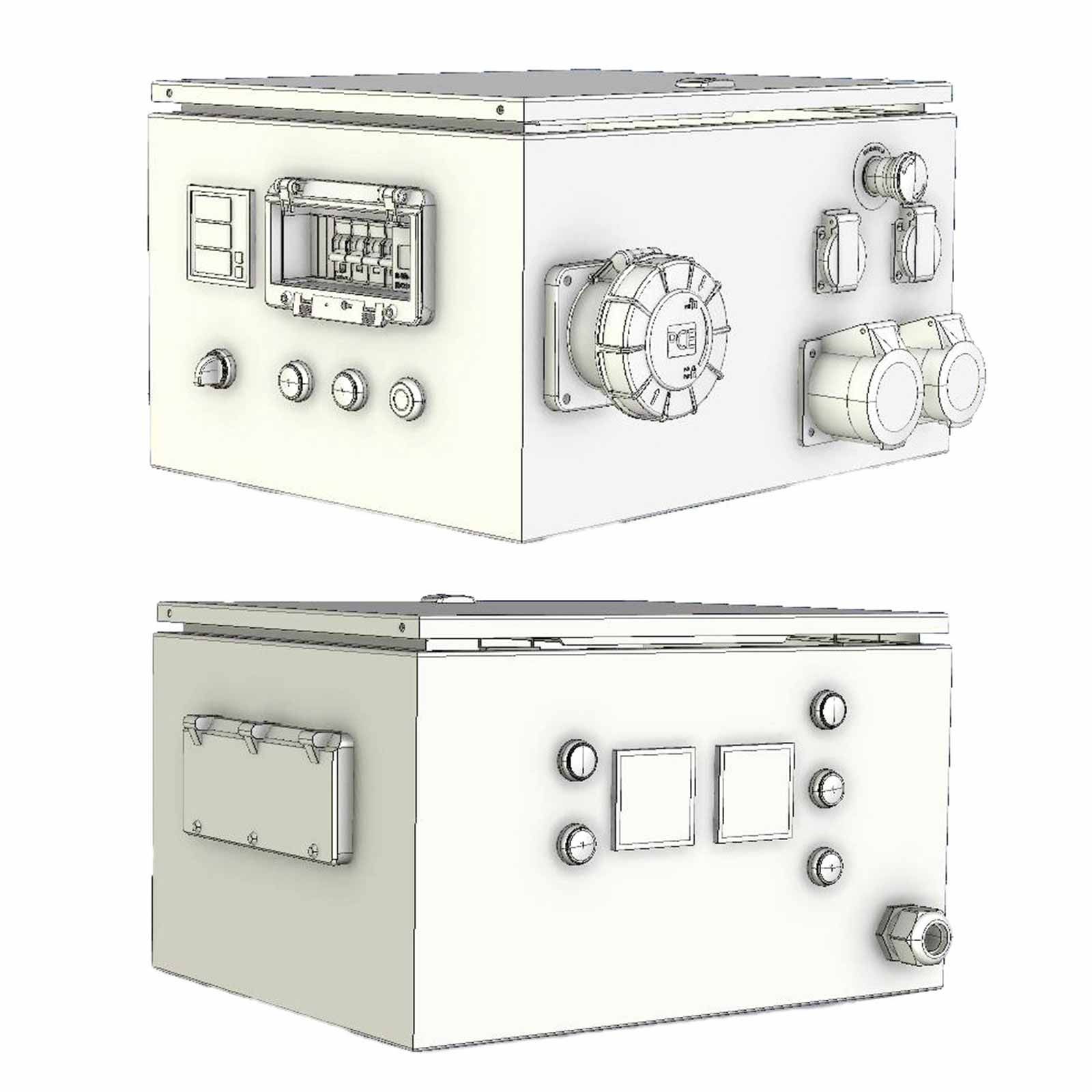 - 1h-Steckdose (Hausbetrieb): 1x CEE 63 A 400 V