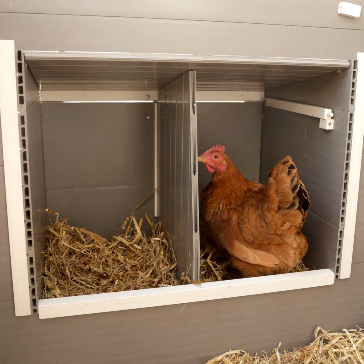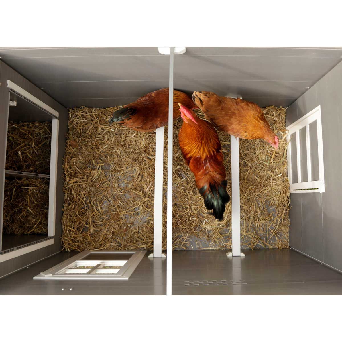 Der Hühnerstall Barney ist durch sein ECO-Kunststoff Material wartungsfrei, wetterfest und umweltfreundlich in der Herstellung. Der Geflügelstall bietet viele praktische Features, die die Geflügelhaltung erleichtern. Neben den 2 Legenestern und 2 Türen bietet der Hühnerstall auch ein Schiebefenster für eine variable Luftzirkulation sowie verlängerte Füße für eine gute Bodenbelüftung. Die präzise Verarbeitung erleichtert die Montage und so ist der Hühnerstall Barney schnell und einfach aufgebaut.