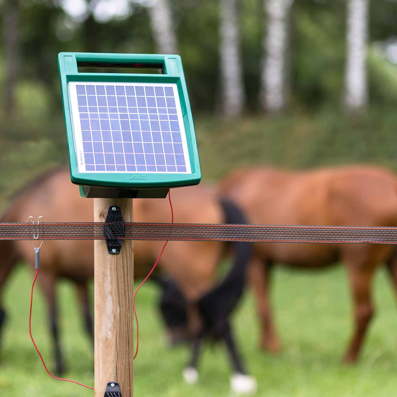 Das Weidezaungerät Solar ist die ideale Wahl für normale Zaunanlagen ohne Bewuchs und eignet sich perfekt für Pferde- und Rinderweiden. Dank seiner optimierten Konstruktion ist es speziell für den wartungsfreien Dauerbetrieb über die Hauptweidesaison ausgelegt.