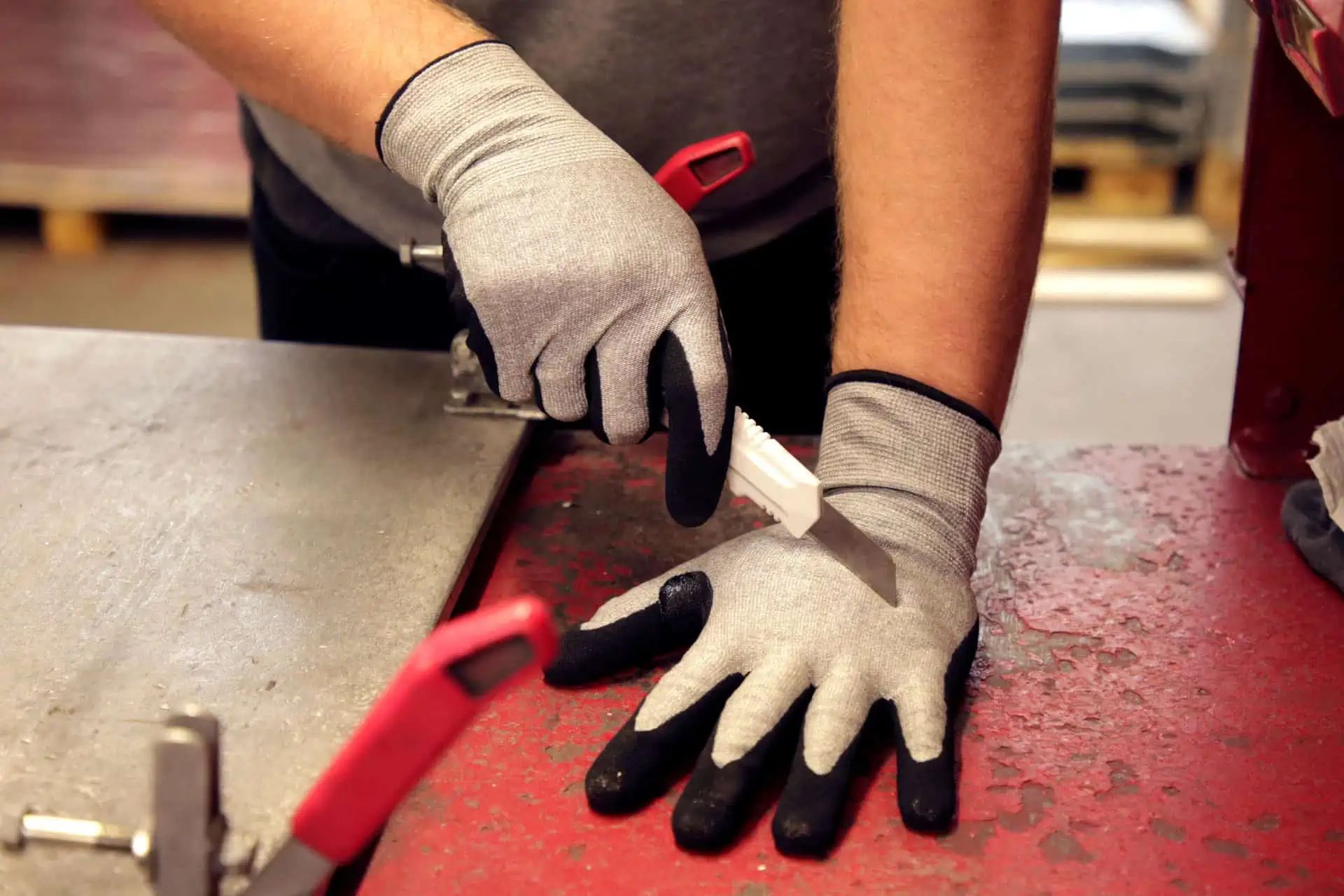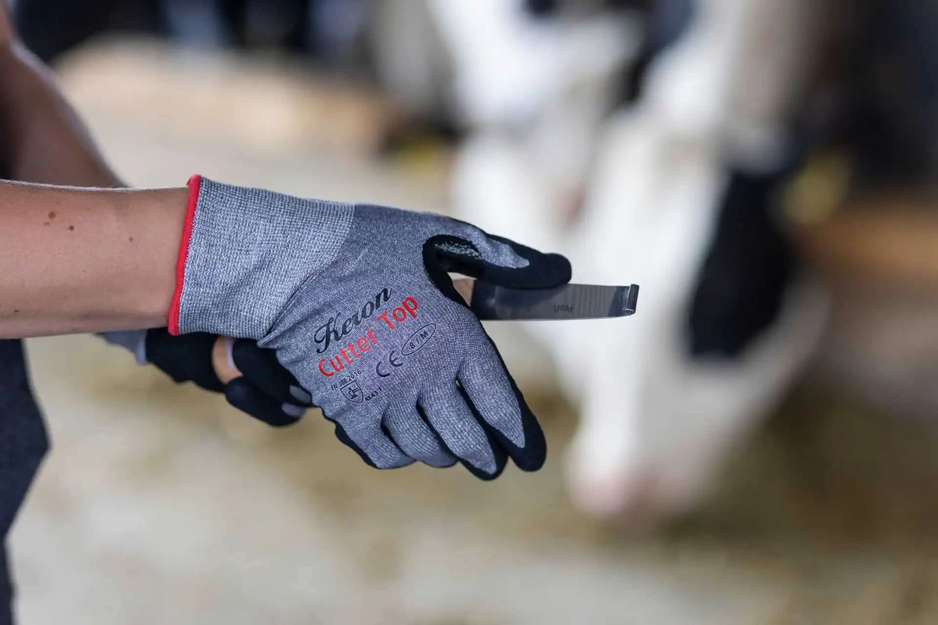 Der Handschuh eignet sich für den Einsatz bei scharfen Kanten, in Metallbetrieben, bei der Glasverarbeitung und bei der Klauenpflege.
