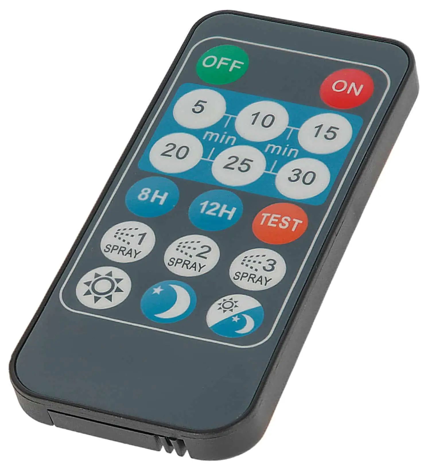 Das automatische Sprühgerät verfügt über einstellbare Intervalle für eine kontinuierliche Insektizidabgabe. Die gewünschten Sprühintervalle können einfach mit der übersichtlichen und benutzerfreundlichen Fernbedienung eingestellt werden. Das Gerät bietet 6 Intervalle für 8 oder 12 Stunden Betrieb, wahlweise tagsüber, nachts oder rund um die Uhr. Für eine optimale Wirkung sollte das automatische Sprühgerät 2 Meter über dem Boden installiert werden.