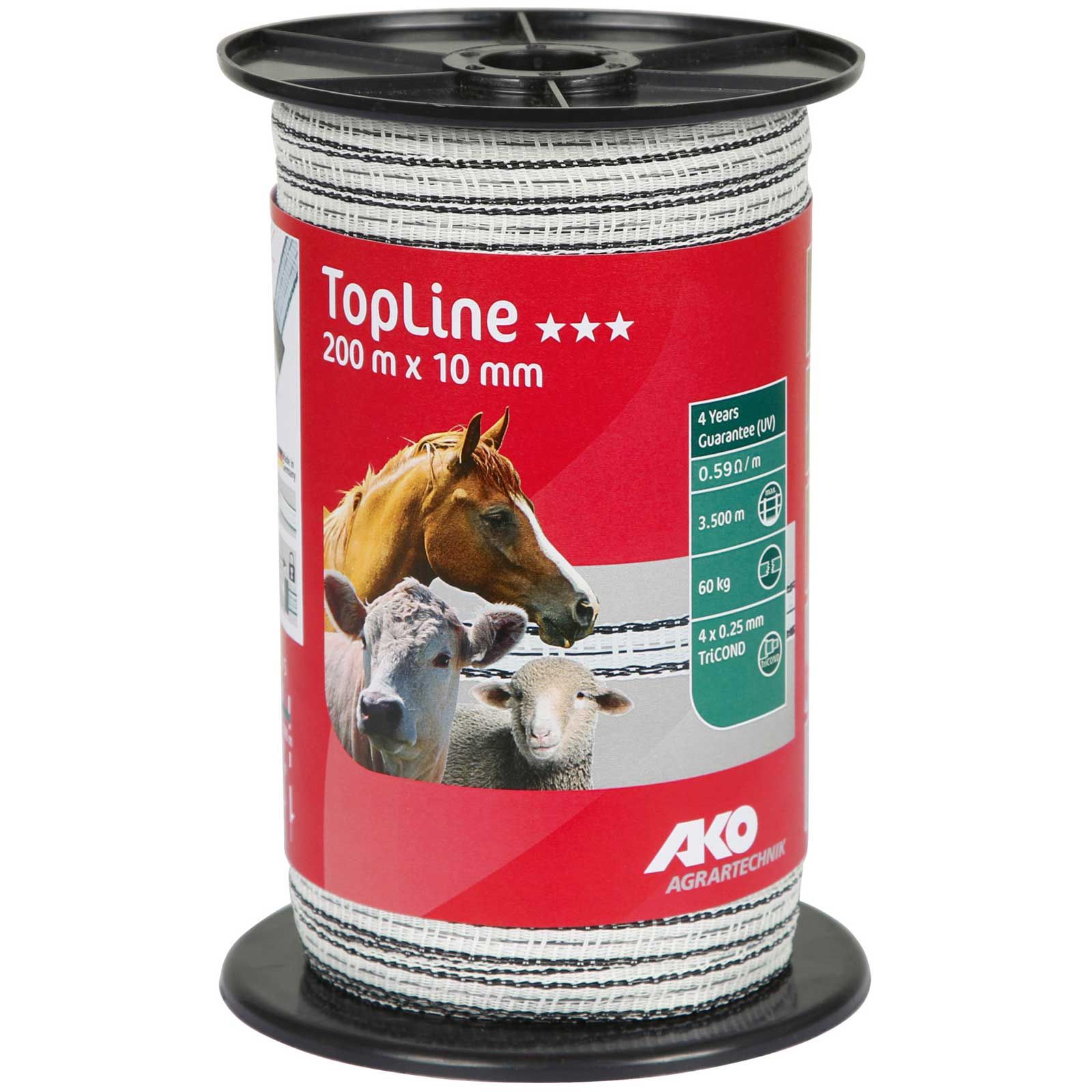 Ako Weidezaunband TopLine TriCOND 200 m, weiß-schwarz