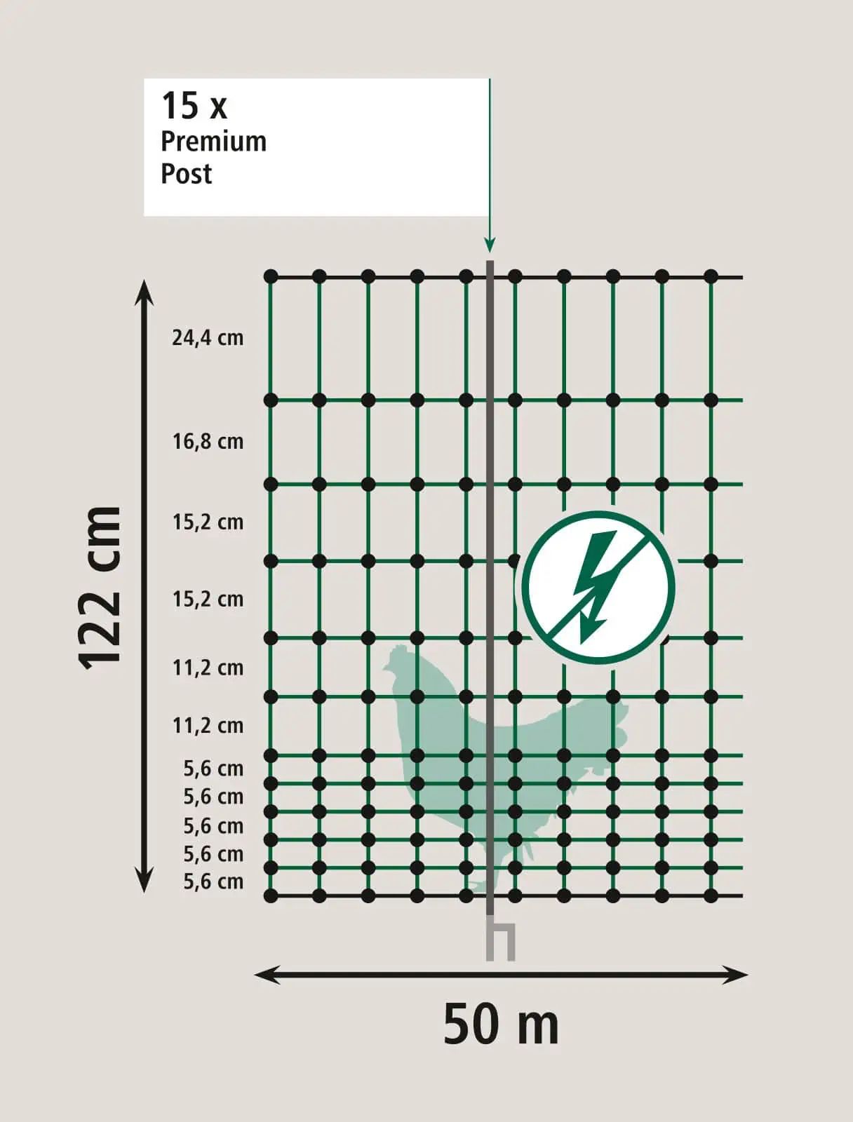 Geflügelnetz Premium, grün, 50m x 122cm, Doppelspitze, nicht elektrifzierbar