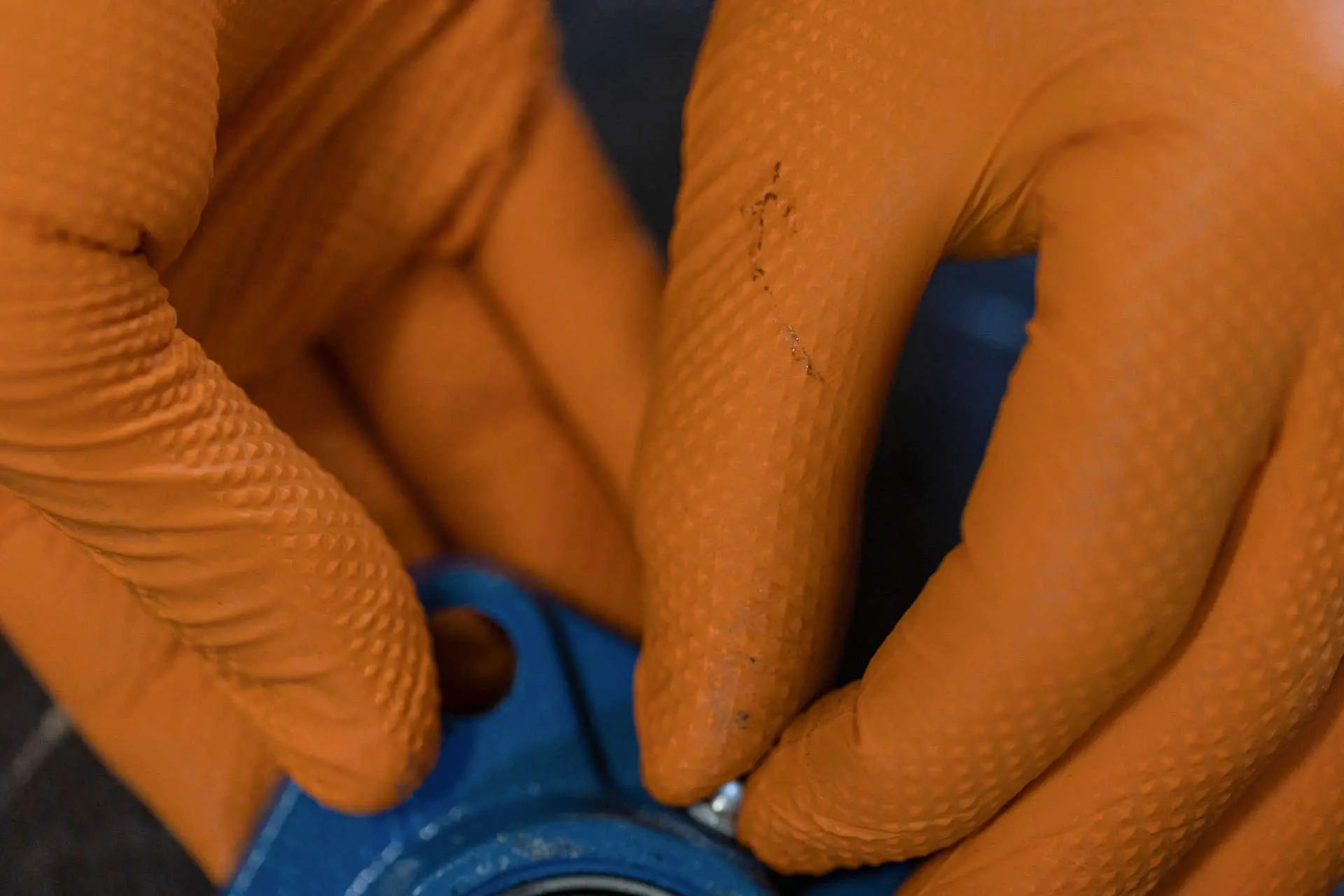 Die Einmalhandschuhe bestehen aus abriebfestem, öl- und chemikalienbeständigem Nitril.