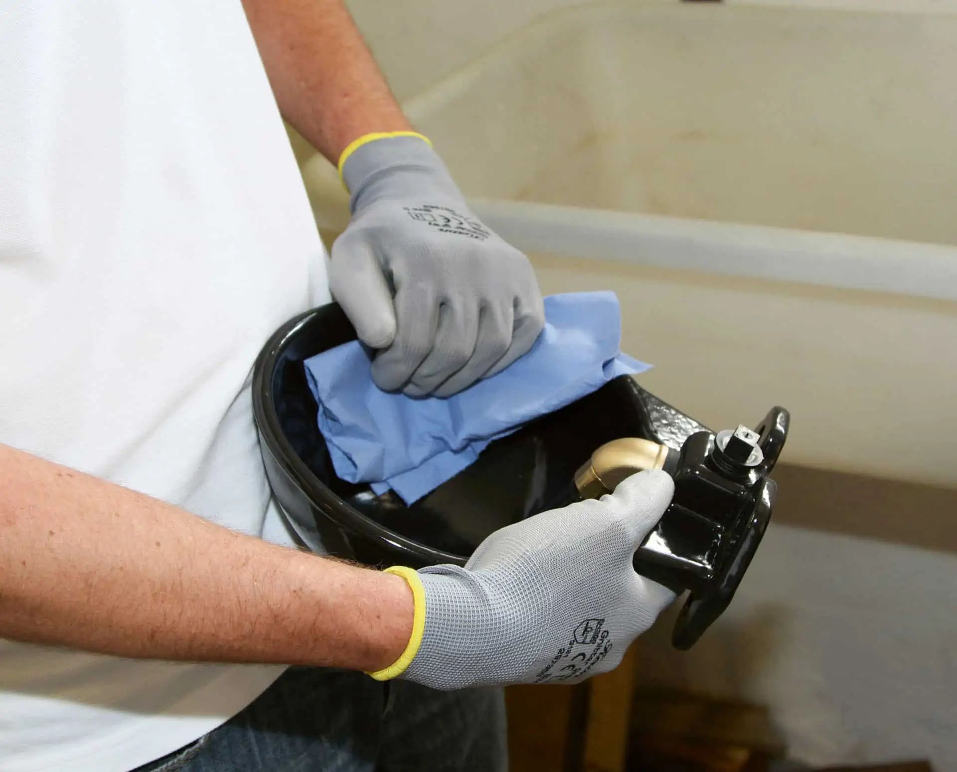 Der Handschuh eignet sich hervorragend für den industriellen Einsatz, aber auch für Maler- oder Packarbeiten.