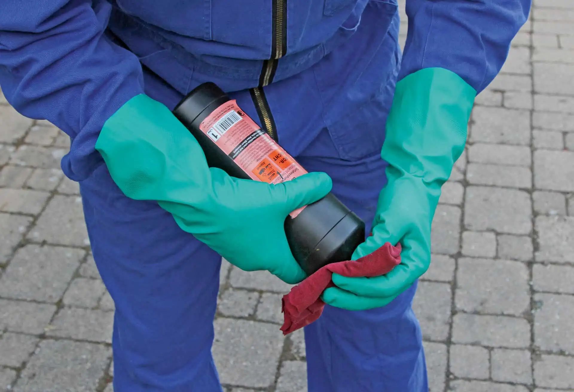 • flüssigkeitsdichter Chemikalienhandschuh mit starker Nitrilbeschichtung