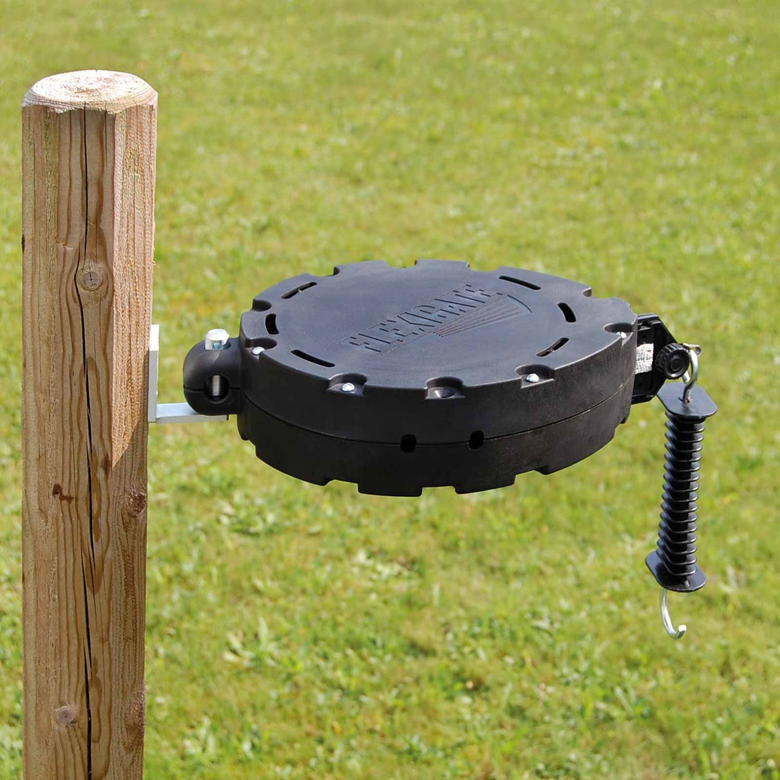 Das flexible Torsystem FlexiGate ist einfach zu montieren,robust und langlebig. Bei jedem Öffnen wird das Weidezaunband von einer Stahlfeder automatisch eingerollt und so optimal vor Verschmutzungen geschützt. Zusätzlich geht keine Gefahr mehr von einem am Boden liegenden Band aus - Stolperfalle adé!