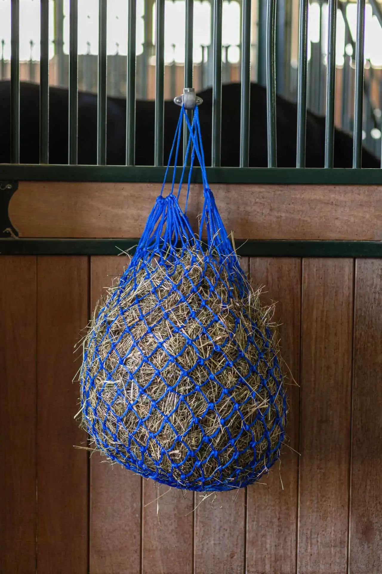 Mit unserem Heunetz Nova genießt dein Tier sein Futter ganz entspannt. Die engmaschige Webart sorgt dafür, dass das Heu nicht so schnell herausfällt und dein Tier länger beschäftigt ist. Das fördert nicht nur die Verdauung, sondern hilft auch, Futterneid zu vermeiden, besonders in Mehrtierhaushalten. Durch die handgeknüpfte Verarbeitung ist das Netz besonders robust und langlebig.