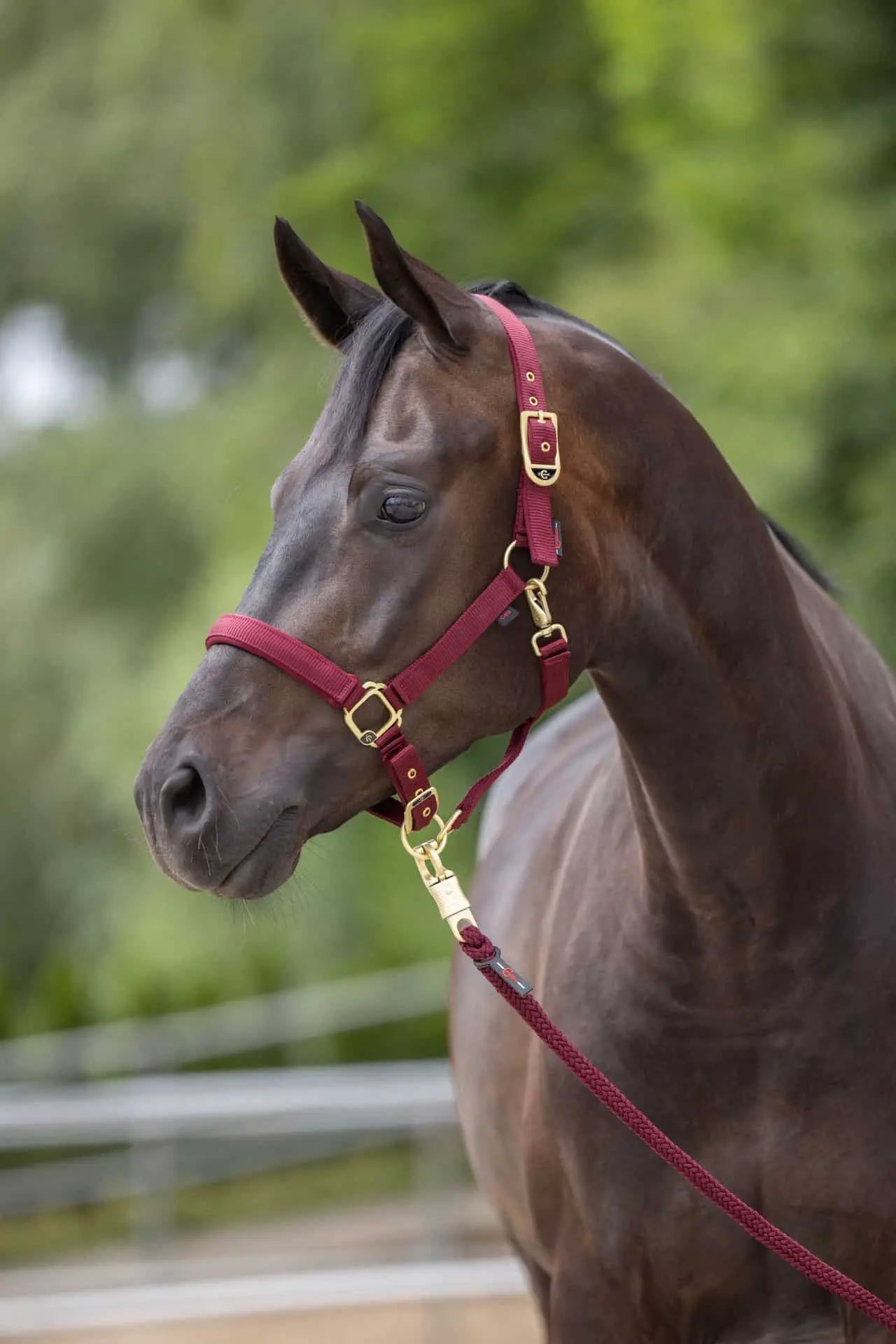 - Genick- und Nasenriemen mit Dornschnalle verstellbar und mit weicher Polsterung unterlegt