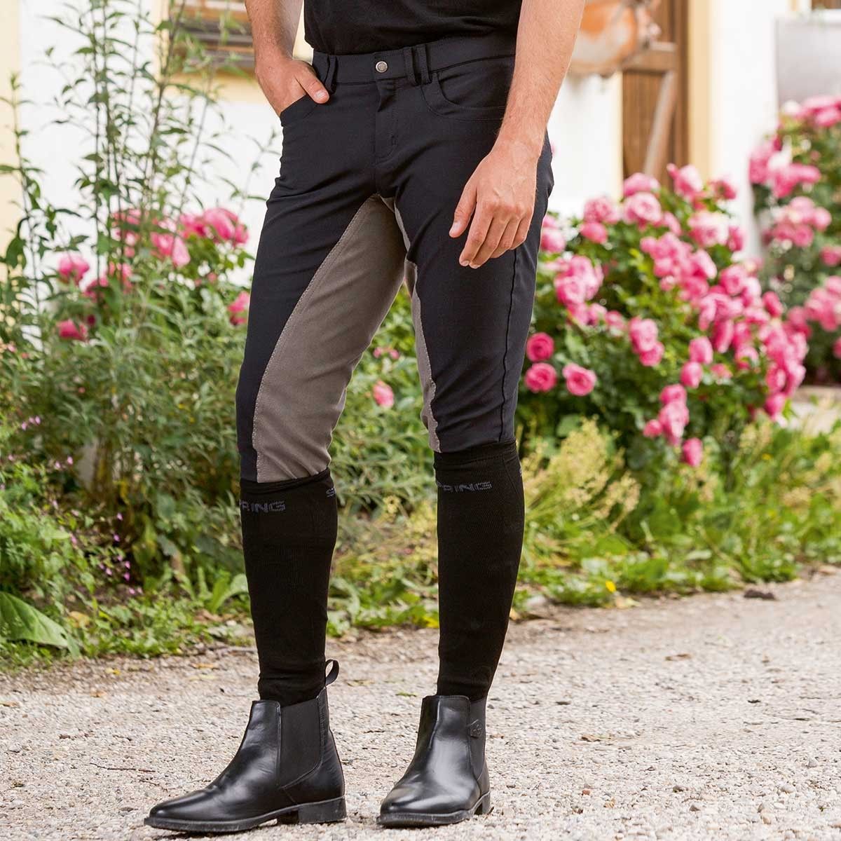 Eine äußerst ansprechende Reithose aus Microfaser und Baumwolle für den perfekten Tragekomfort. Die Kontrastnähte und die Paspelierung an den Gesäßtaschenattrappen verleihen der Techno das gewisse Extra. Selbstverständlich ist das Modell, wie es sich für eine vollwertige Reithose gehört, mit einem elastischen Ganzbesatz ausgestattet. Der Beinabschluss mit dem "ElastoSoft"-Material sorgt für einen perfekten Sitz und verhindert lästige Druckstellen.