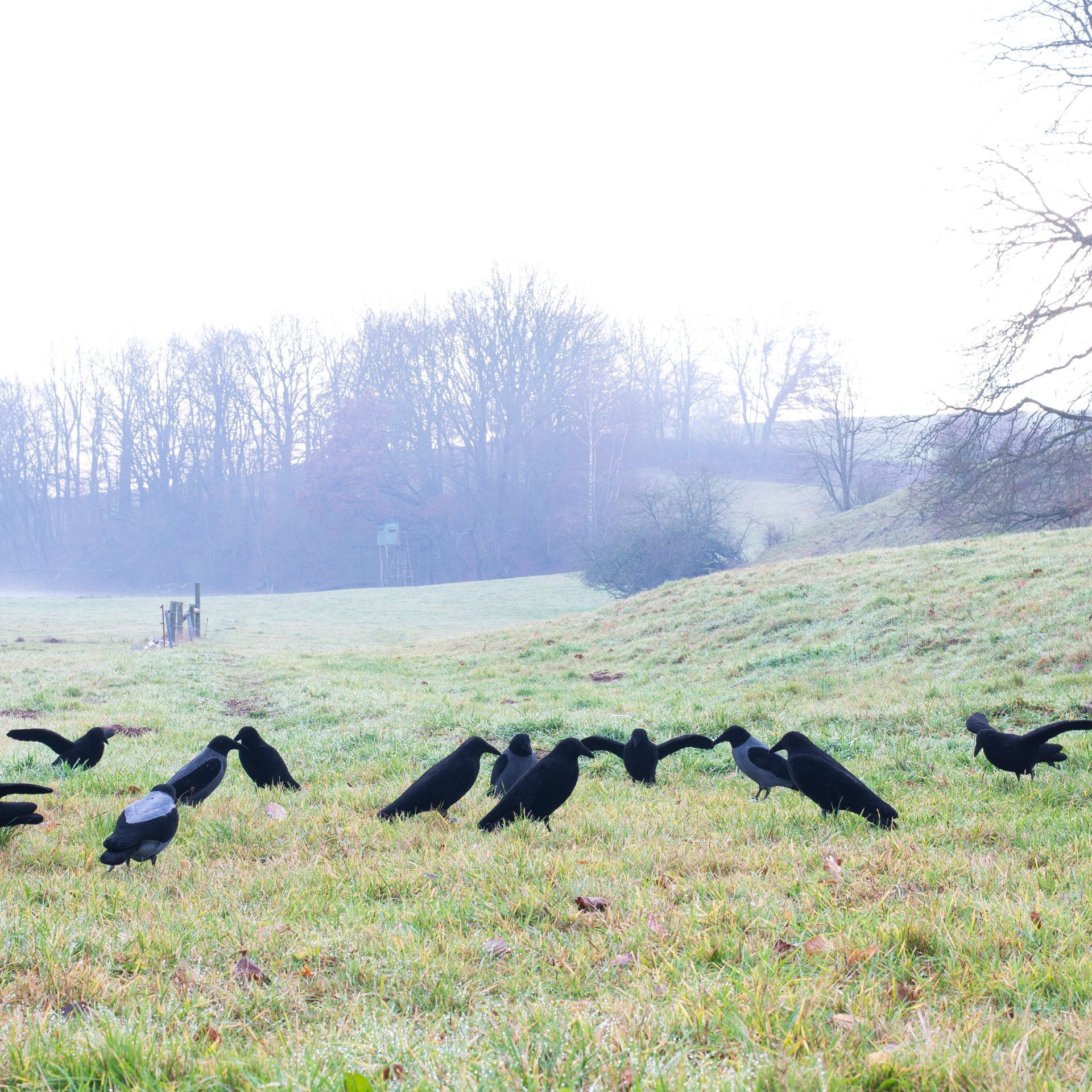 Wie viele beflockte Nebelkrähen sollte ich für meine Jagdszenerie verwenden?