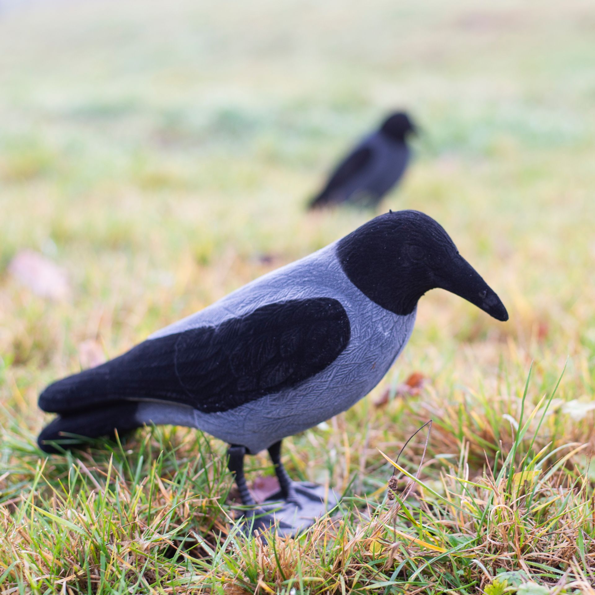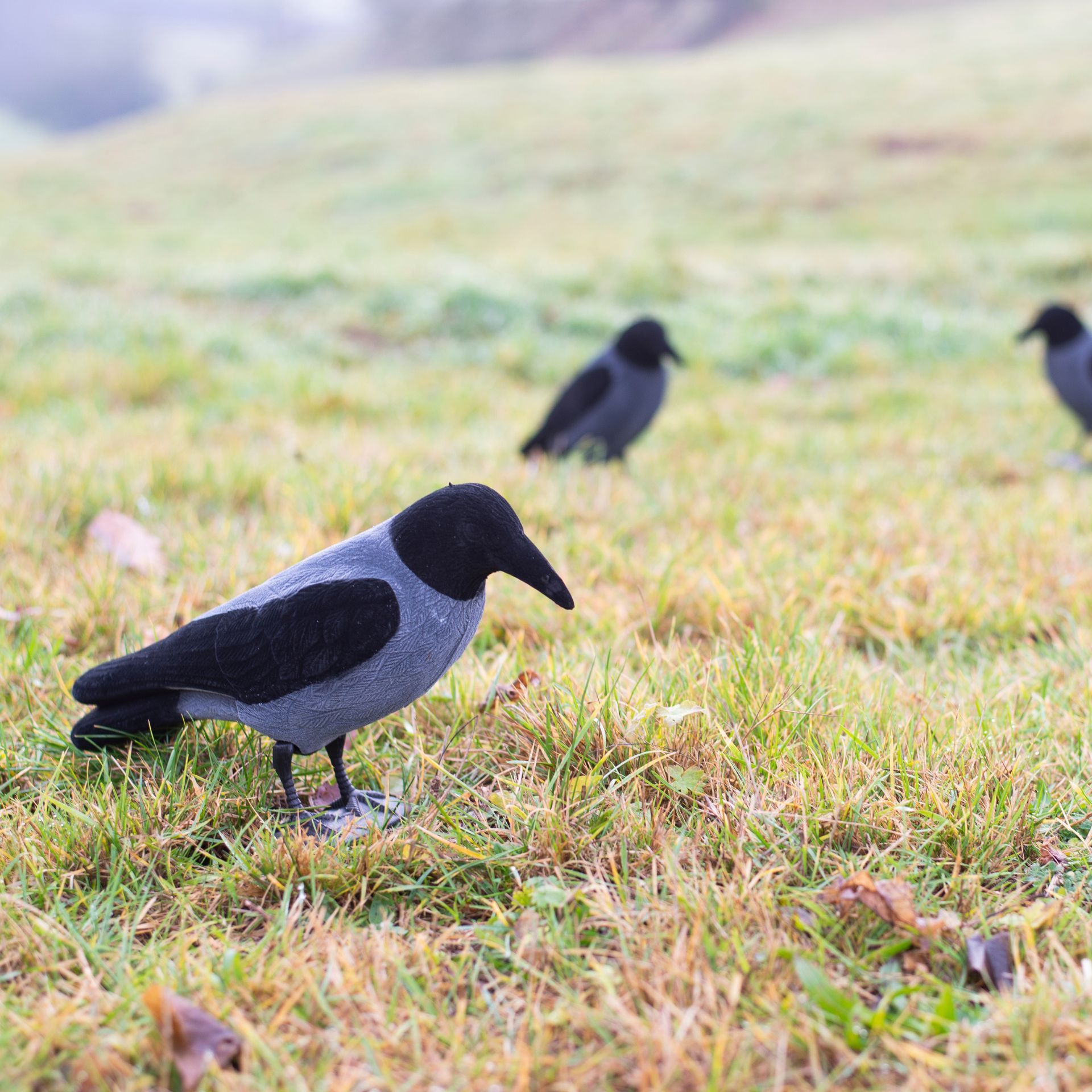 1x Beflockte Nebelkrähe Vollkörper, Pin und Standfuß