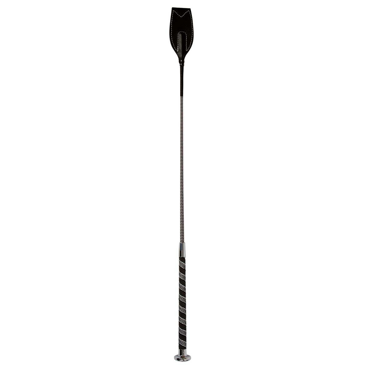 Die hochwertige Springgerte besitzt einen Anti-Slip Griff und dekorative gold- bzw. silberfarbenden Applikationen.