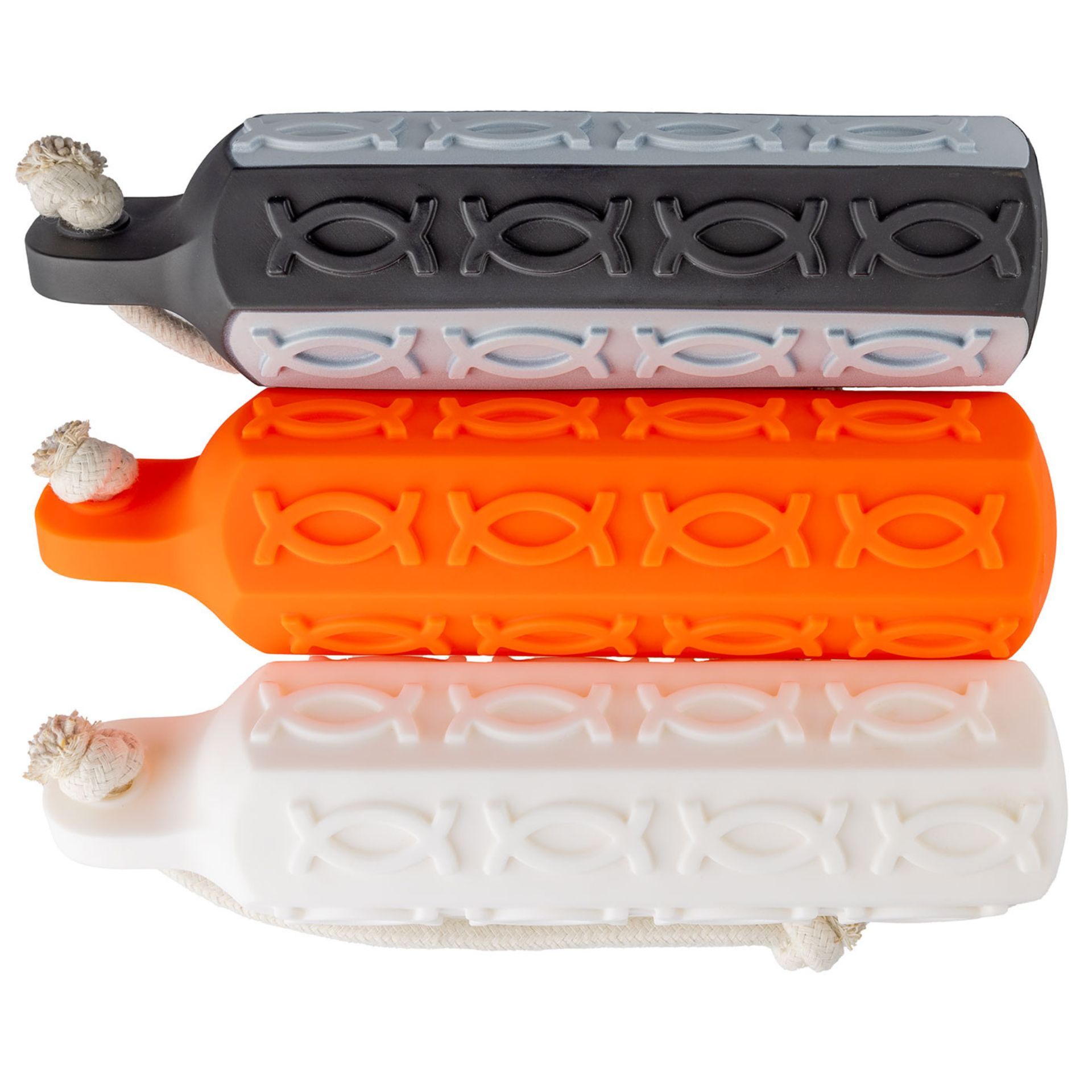 Die robusten Apportierdummies von HP&G sind in drei verschiedenen Designs und Größen erhältlich und in verschiedenen Farben (Schwarz-Grau; Orange; Weiß) angeboten. Dadurch bieten sie immer einen perfekten Kontrast zur Umgebung, sodass der Hund stets den Fokus auf das Wesentliche behält.
