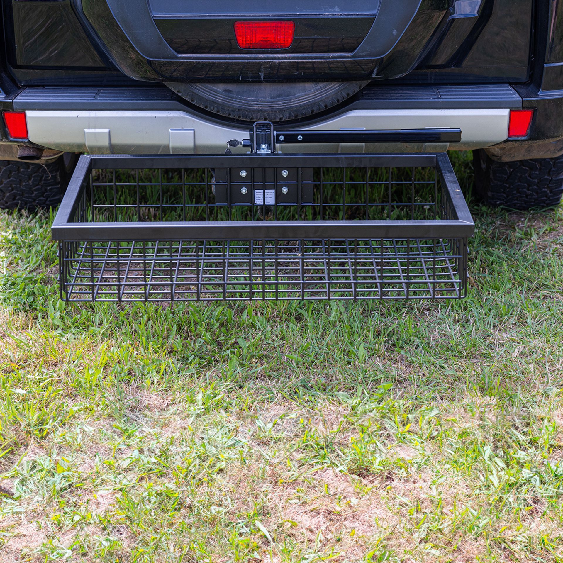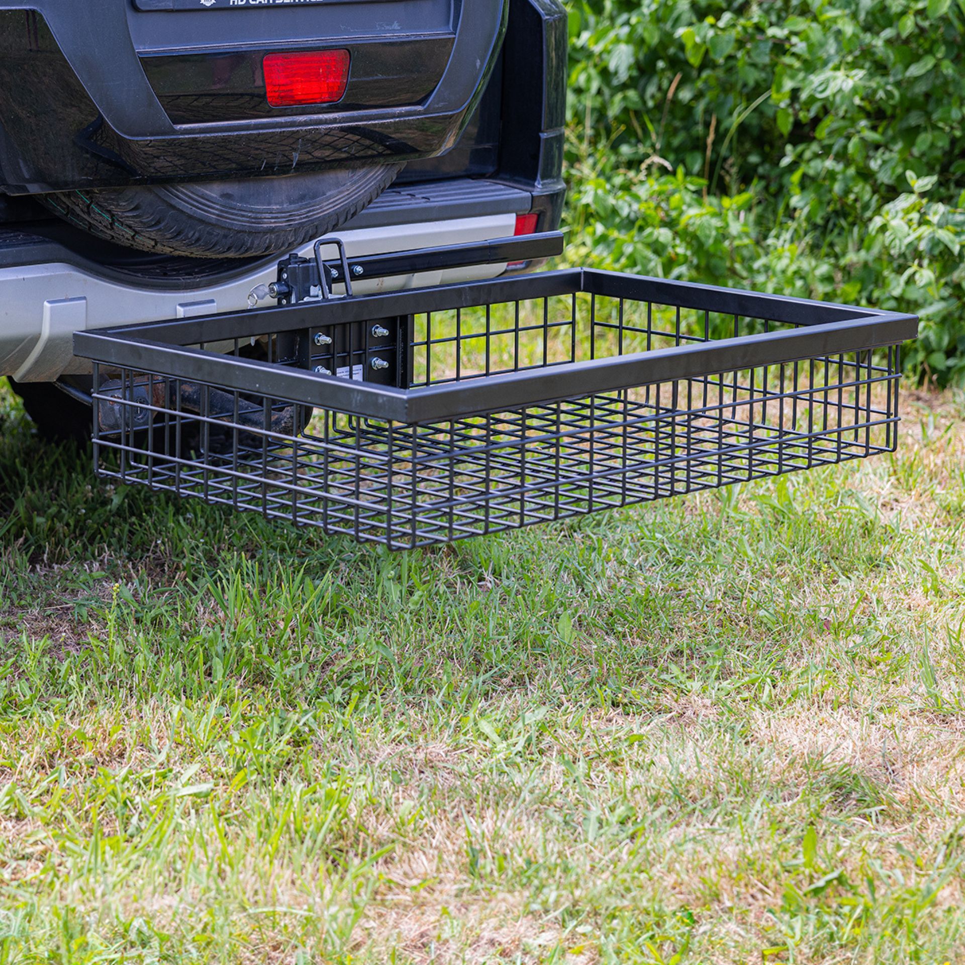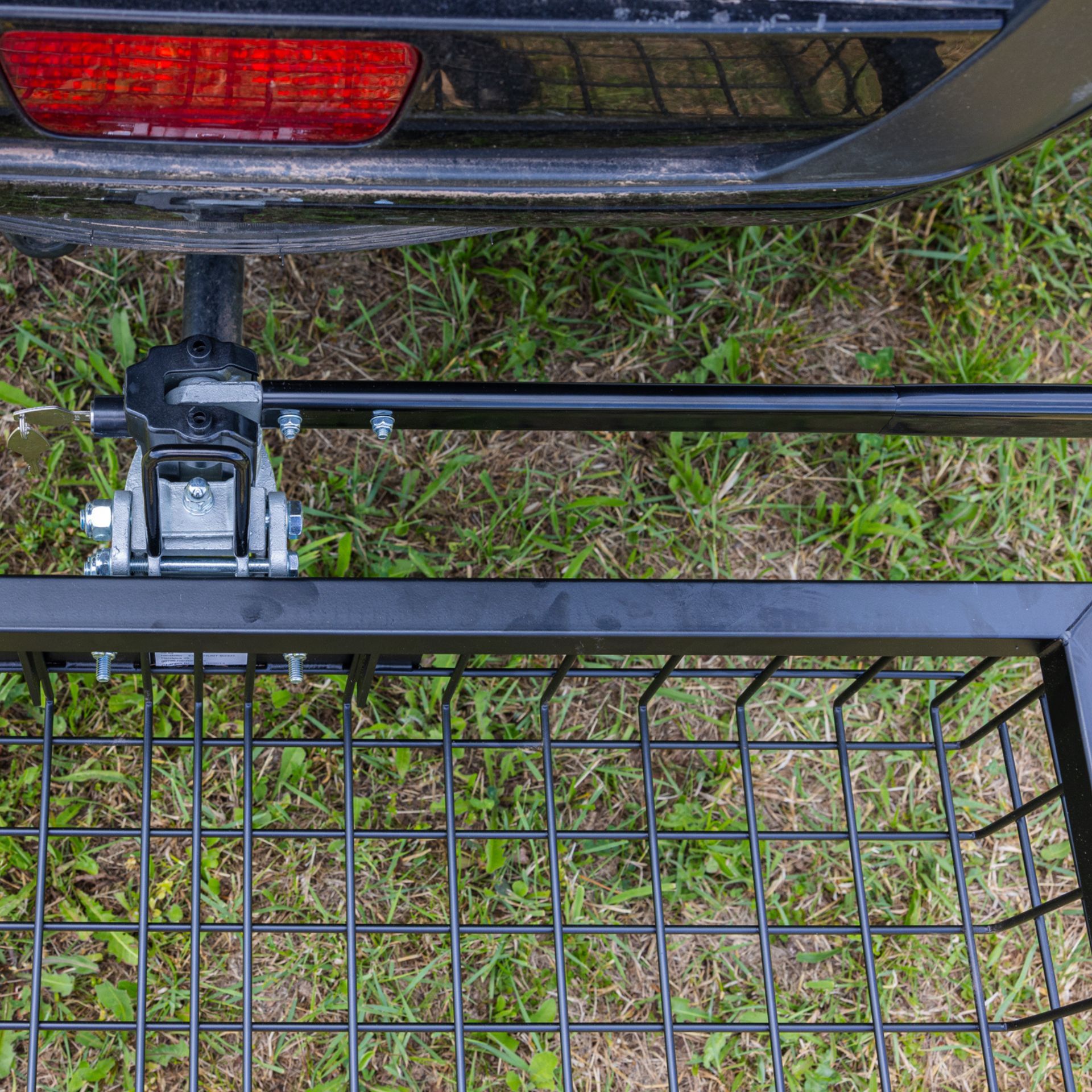 Der Heckträger beschichtet mit klappbarer Schnellkupplung ist eine unverzichtbare Lösung für alle, die verschiedene Artikel sicher und effizient transportieren möchten. Dieser Heckträger ist darauf ausgelegt, funktional und praktisch zu sein und bietet eine große Ladekapazität, ideal für den Transport von allem, von Campingartikeln bis hin zu Sportausrüstung.