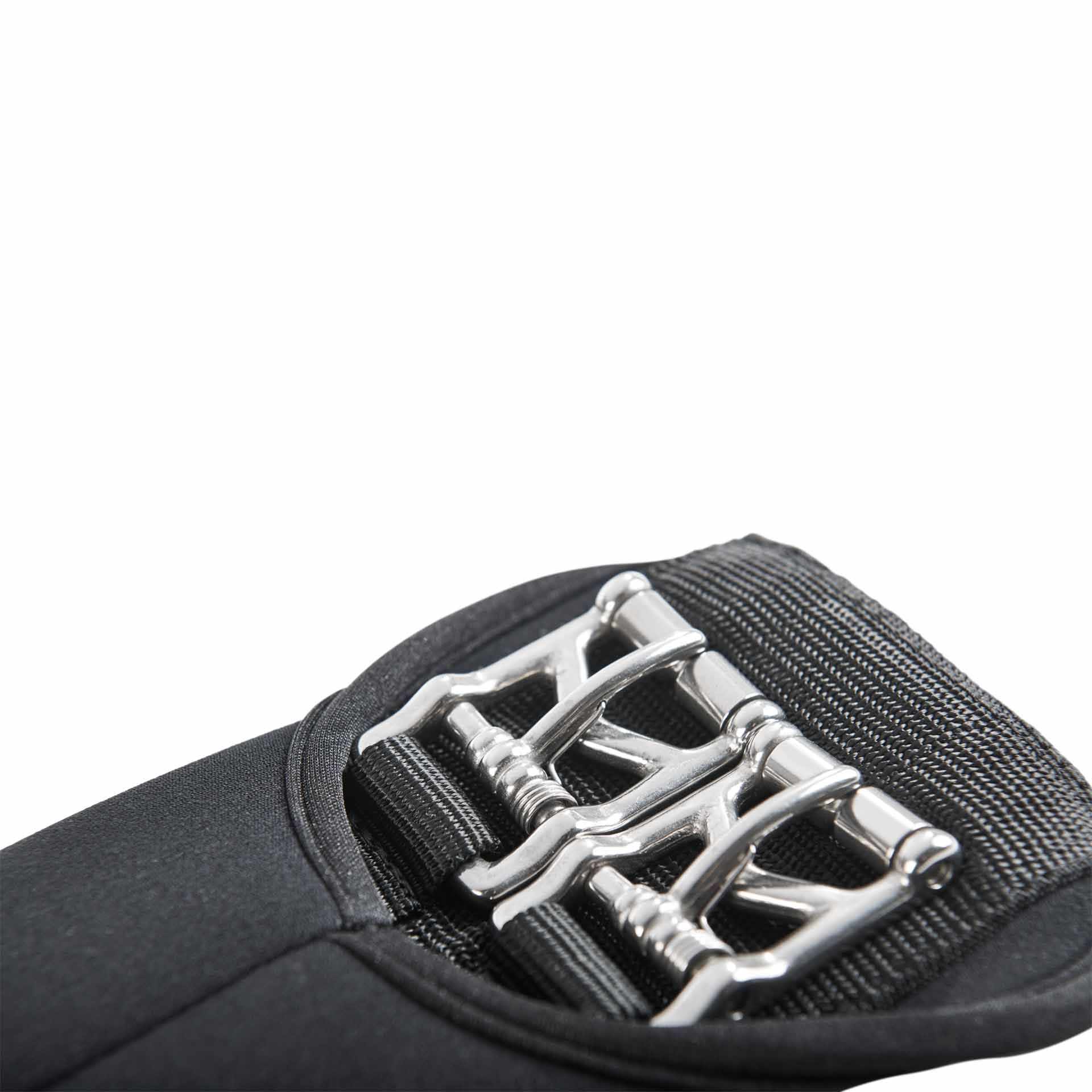 Einer der bemerkenswertesten Vorteile des BUSSE Sattelgurt PRO SOFT-DR D sind die patentierten Pro Schnallen. Aus Edelstahl mit Feder gefertigt, lassen sie den Dorn beim Nachgurten automatisch in das nächste Loch gleiten. So ermöglichen sie ein besonders einfaches, einhändiges Nachgurten, während die langlebigen Rollen ohne Schweißnaht die Gurtstrupfen schonen.