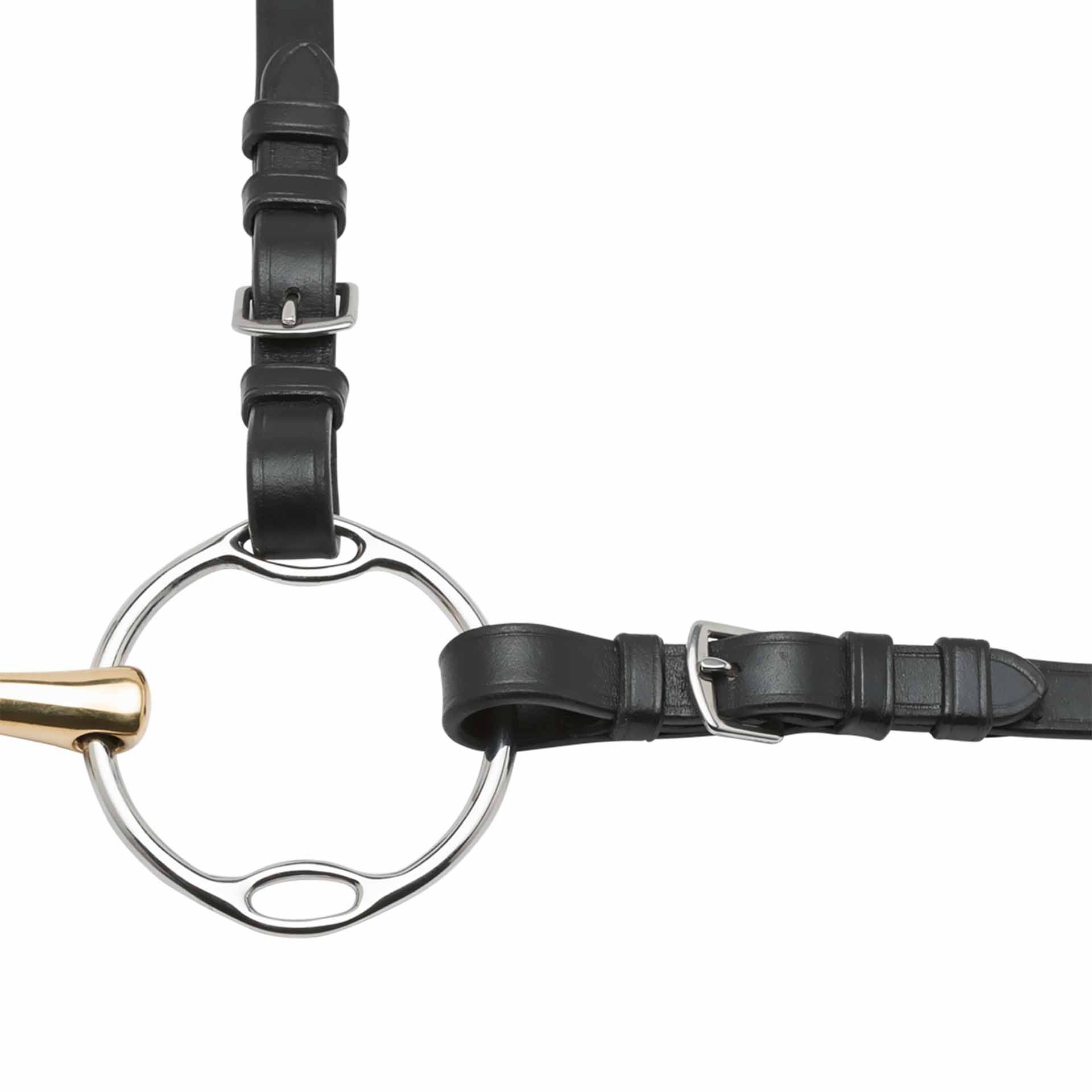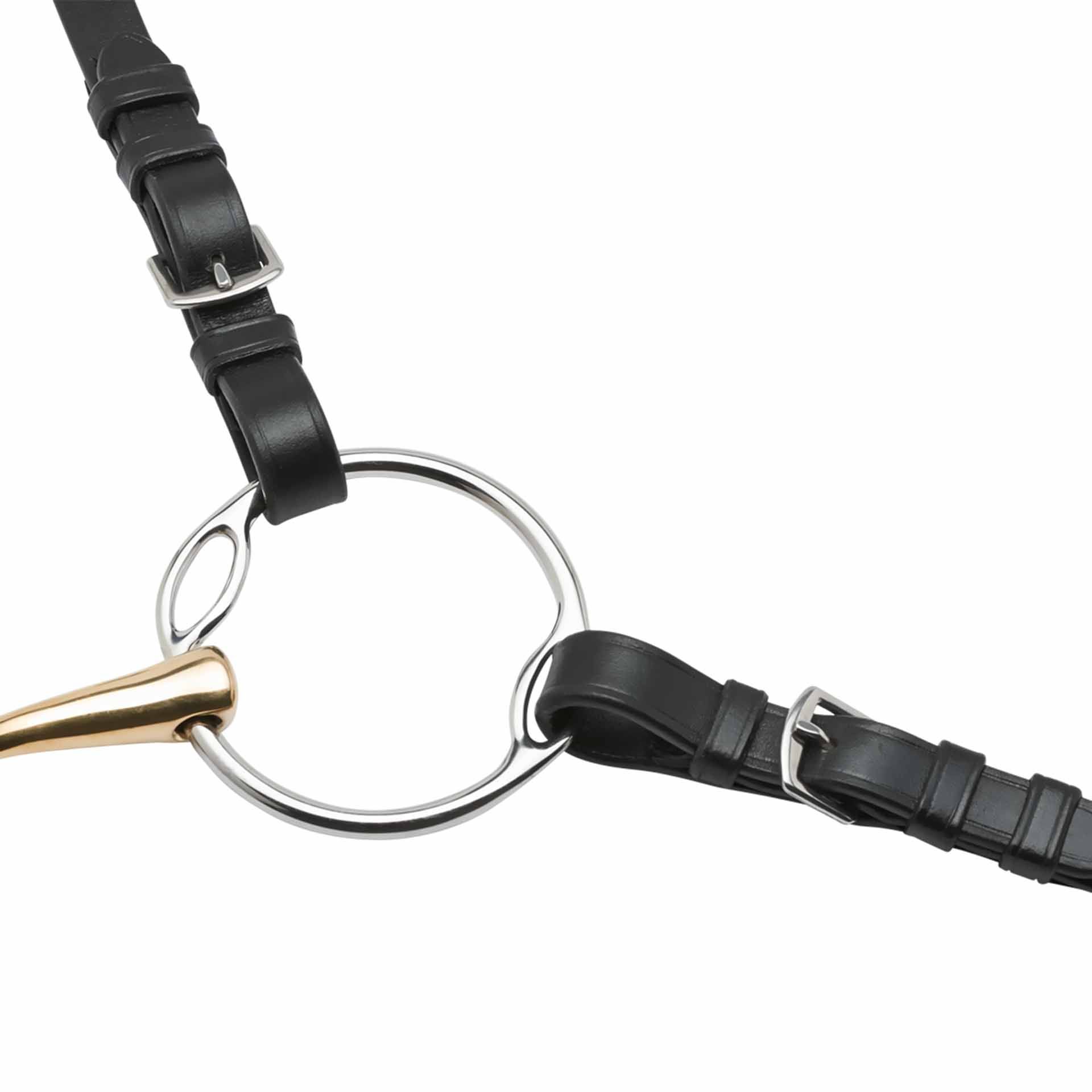 Es ist wichtig, dass das Gebiss korrekt in die Gebissriemen der Trense oder Kandare verschnallt wird. Bei einer korrekten Höhenverschnallung mittels der Gebissriemen bilden sich ca. 2-3 kleine Falten an den Maulwinkeln.