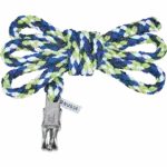 Dieser Anbindestrick ist mit einem silberfarbenen Haken ausgestattet, der für zusätzliche Sicherheit sorgt und gleichzeitig ein modisches Accessoire darstellt.