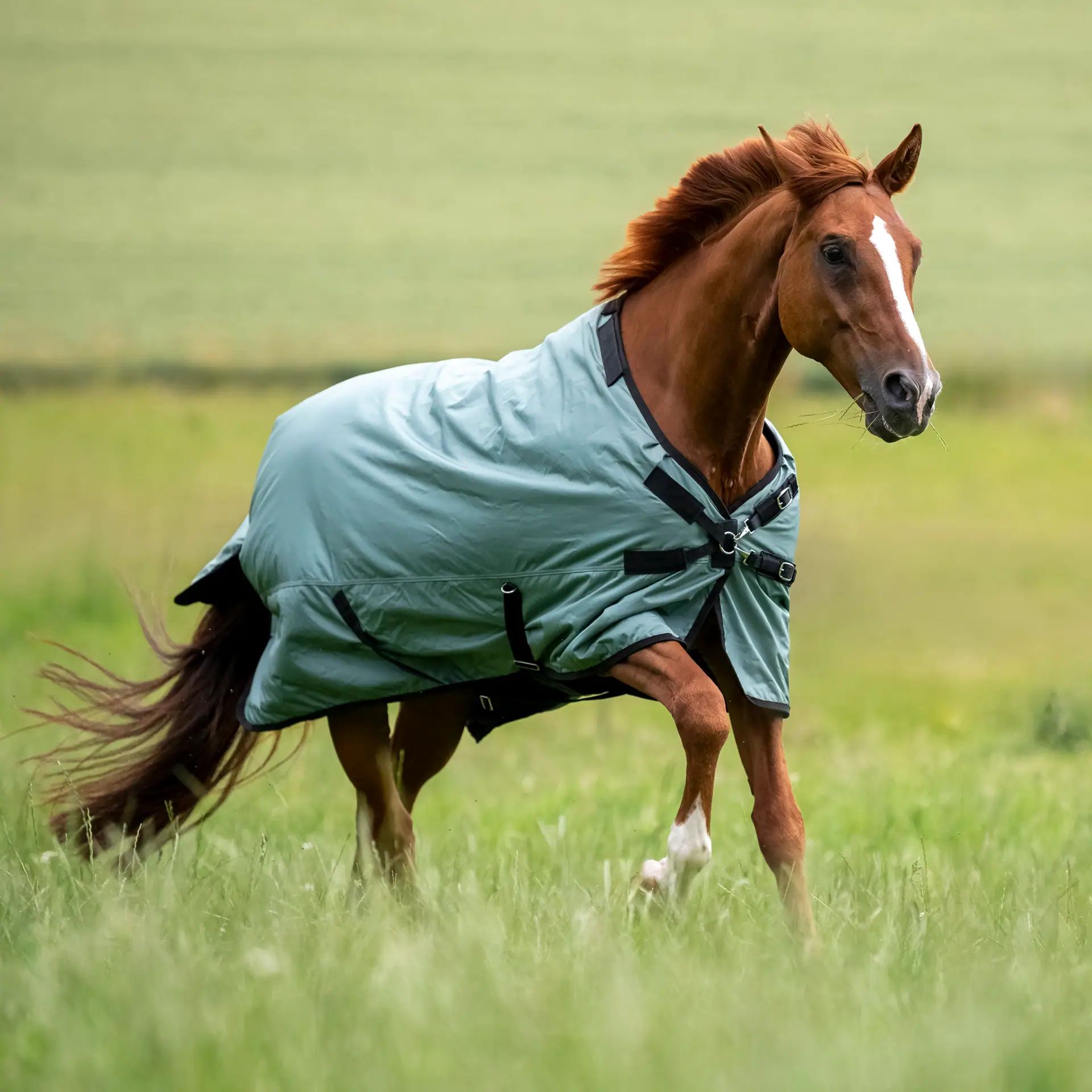 Dank ihres äußerst strapazierfähigen und funktionserprobten Außenmaterials aus 840 den Nylon bietet die FLEXIBLE PRO 250 maximale Beständigkeit und Langlebigkeit. Eine mittlere Wärmeisolierung von 250 g Polyfill trägt zum Wohlbefinden des Pferdes bei und gewährleistet Thermokomfort. Das DRYsense-Lining, ein besonders fellfreundliches und schnelltrocknendes Polyestergewebe, sorgt für eine soft-trockene Haptik auch bei hoher Luftfeuchtigkeit und verhindert, dass die Decke von innen klamm wird. Mit einer Atmungsaktivität von 3000 g/m²/24h und einer Wasserdichtigkeit von 5000 mm ist die Outdoordecke auch winddicht und wetterfest.
