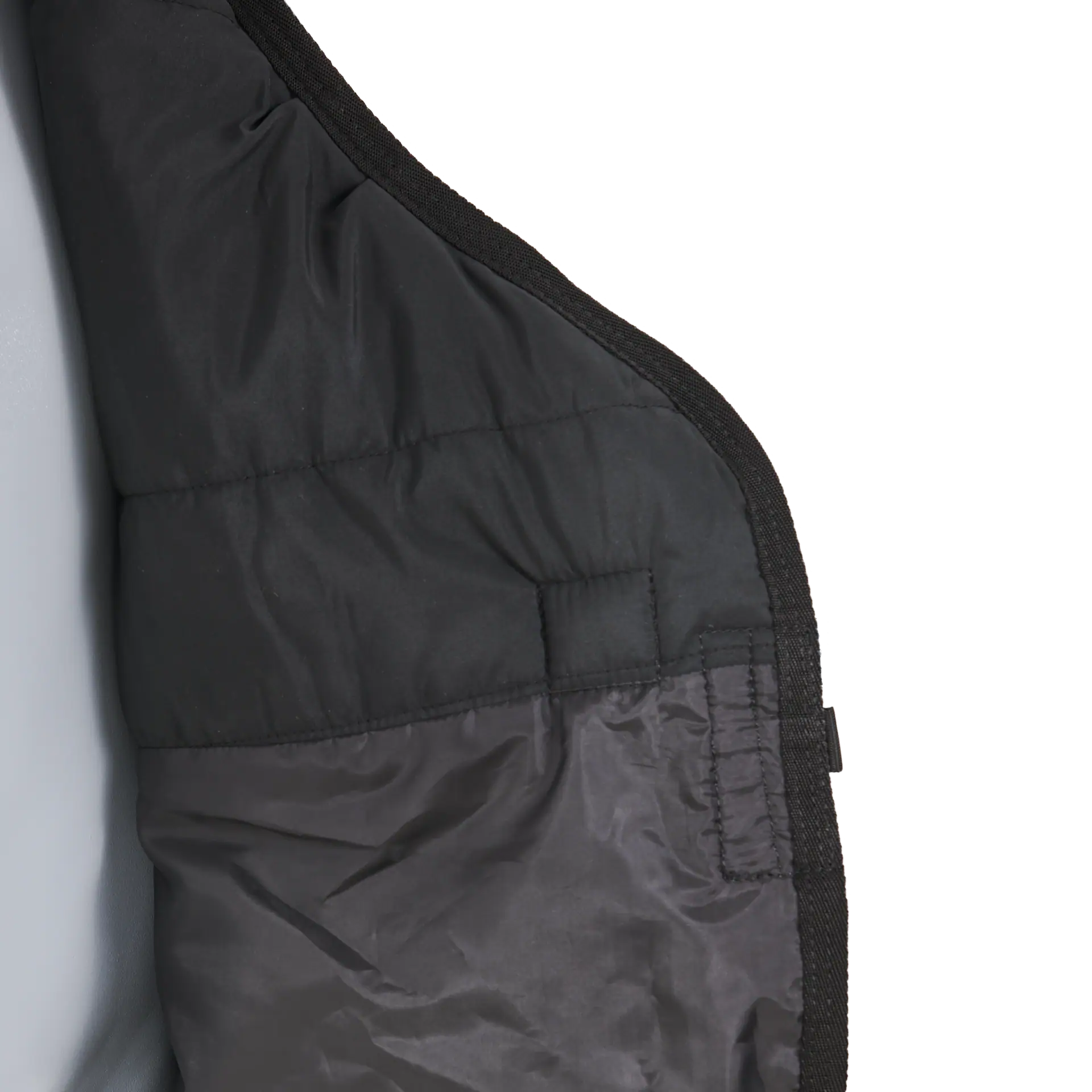 Die durchdachte Passform und Ausstattung der FLEXIBLE PRO 250 sorgt für optimalen Tragekomfort und einfache Handhabung. Das Komfort-Brustdesign bietet optimalen Schulterabschluss und ausreichend Platz für die Buggelenke. Der V-Quick-Snap-Brustverschluss mit integriertem Doppelklett und auswechselbaren Karabinern ermöglicht eine einfache Befestigung und Anpassung. Die Decke ist mit integriertem Klettsystem zur Anbringung eines Halsteils und mit integrierten Ösen zur Befestigung eines Liners ausgestattet. Ein Widerristpolster aus synthetischem Kautschuk mit hautfreundlicher Jersey-Oberfläche, längeneinstellbare Kreuzbegurtung, elastische Hinterhandfixierung mit Schmutzschutz und eine gefütterte, großzügige Schweifabdeckung runden die Ausstattung ab.