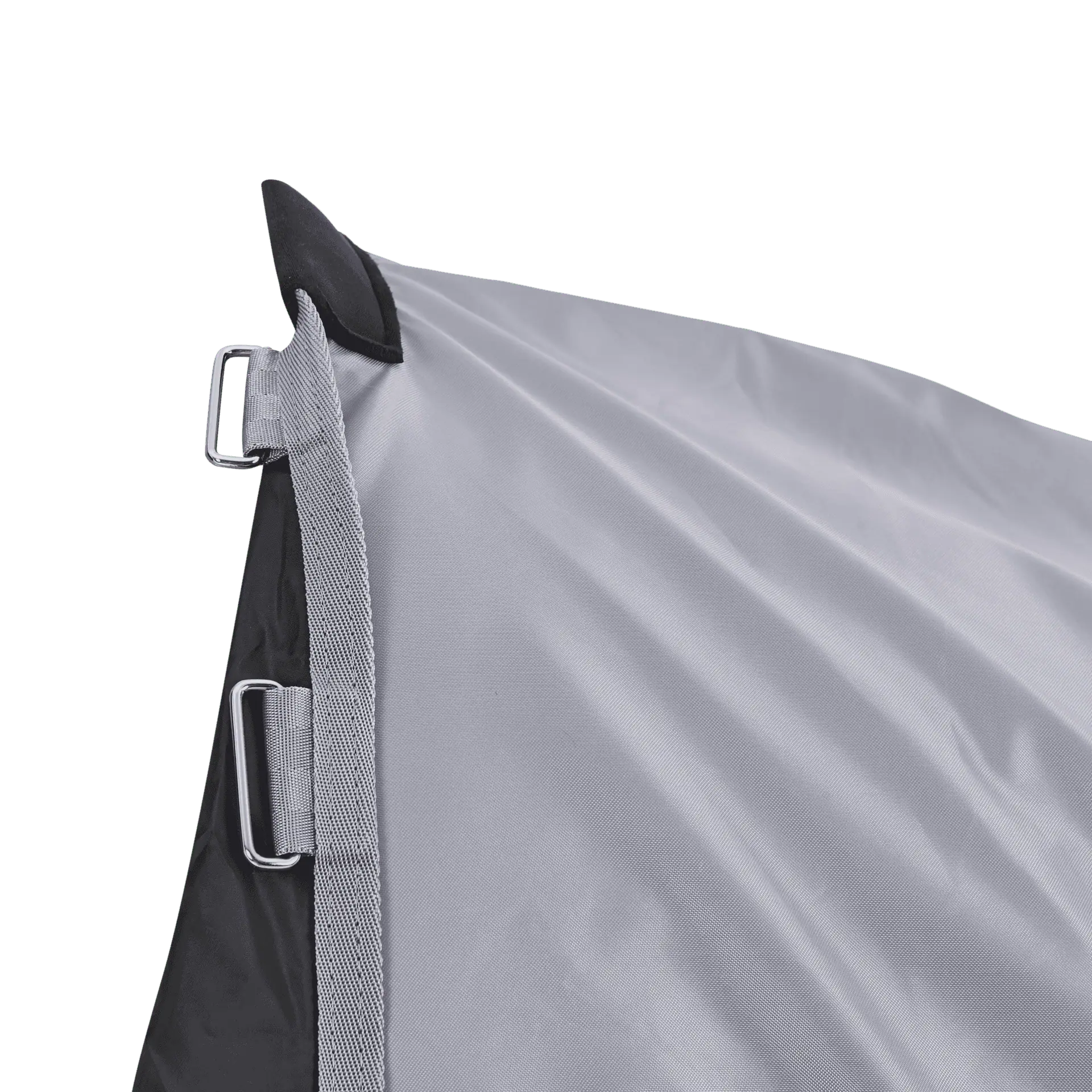 Die längeneinstellbare Kreuzbegurtung, die tiefe Hinterhandkordel und die Schweifabdeckung sorgen für einen sicheren Sitz und optimalen Schutz bei jeder Wetterlage.