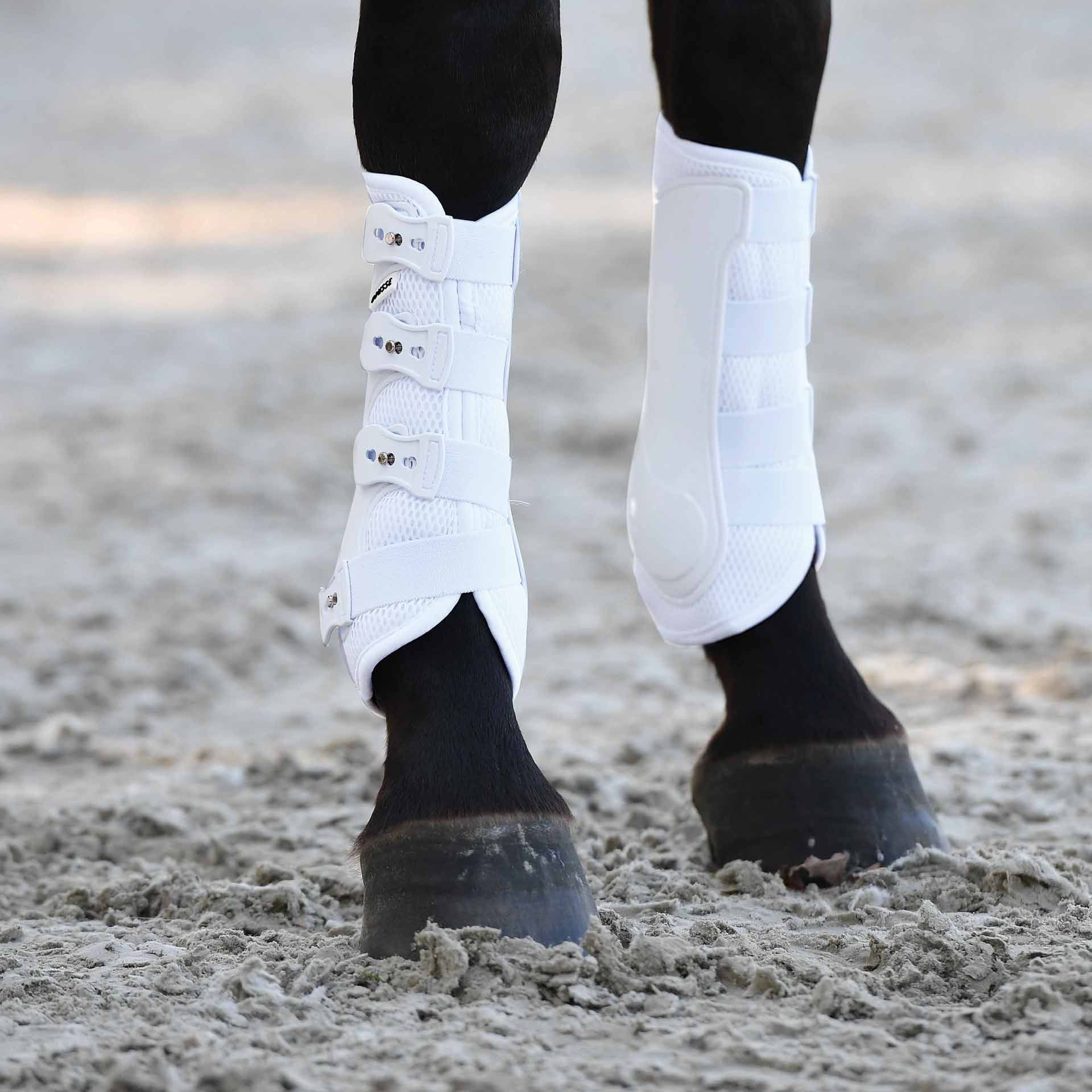 - Rundum geschlossene, anatomisch geformte Dressurgamaschen